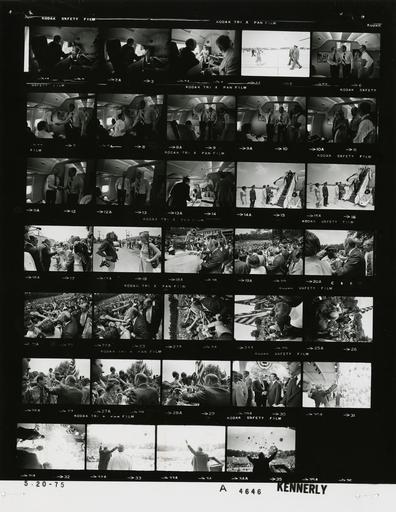 | Keywords: Ford A4646 NLGRF photo contact sheet (1975-05-20)(Gerald Ford Library).jpg White House Photographic Office WHPO is housed at the Gerald R Ford Presidential Library a branch of the National Archives and Records Administration NARA <br/><br/> This file is a 200 dpi photo contact sheet having images from roll of film A4646 of the August 9 1974 - January 20 1977 Gerald R Ford White House Photographic Office Series A0001-A9999 and B0001-B2886 photographs <br/><br/> The date on the photo contact sheet is the date the roll of film was processed not necessarily the date the photographs were taken See table below for additional details 1975-05-20 Gerald R Ford Presidential Library Image http //www fordlibrarymuseum gov/library/whphotos/A4646_NLGRF jpg A4646_NLGRF jpg from http //www fordlibrarymuseum gov/library/whphotos/19750520whpo pdf White House Photographs May 20 1975 of the http //www fordlibrarymuseum gov/Library/whphotos/whpo asp White House Photographic Collection page White House Photographic Office WHPO <br/> Creator David Hume Kennerly PD-USGov Institution Institution Gerald R Ford Presidential Library Table wikitable sortable + Photo contact sheet A4646 U S President Ford Administration Gerald R Ford Library Frame s Tone Subject proper Subject generic Names Geographic Location Photographer Date - 1A-3A BW Flight to Andrews Air Force Base seated talking; others not in all frames GRF Susan Ford Others Marine One Kennerly 1975-05-20 - 4A BW Prior to Departure for North Carolina - Andrews Air Force Base Maryland walking across tarmac GRF Susan Ford Others Andrews Air Force Base MD Andrews Air Force Base Kennerly 1975-05-20 - 5A-13A BW Flight to North Carolina greeting handshaking standing talking; all not in every frame; Susan Ford in some frames GRF; Susan Ford Nessen; Others Air Force One Kennerly 1975-05-20 - 14A-15A BW Arrival in North Carolina - Charlotte North Carolina GRF descending steps from Air Force One GRF Others Charlotte NC Douglas Municipal Airport Kennerly 1975-05-20 - 16A-28A BW Mecklenburg County Bicentennial Celebration - Charlotte North Carolina greeting handshaking standing talking mingling; all not in every frame; Susan Ford and photographer in 2nd frame GRF Susan Ford Crowd Charlotte NC Freedom Park Kennerly 1975-05-20 - 29A BW Mecklenburg County Bicentennial Celebration - Charlotte North Carolina greeting handshaking; all not in frame GRF Platform Guests Charlotte NC Freedom Park Kennerly 1975-05-20 - 30A-34A BW Mecklenburg County Bicentennial Celebration - Charlotte North Carolina waving to crowd from podium; back to camera GRF Charlotte NC Freedom Park Kennerly 1975-05-20 Gerald R Ford Presidential Library and Museum-cooperation PD-USGov Contact sheets by the Ford White House May 1975 Photographs by David Hume Kennerly from 1975 |