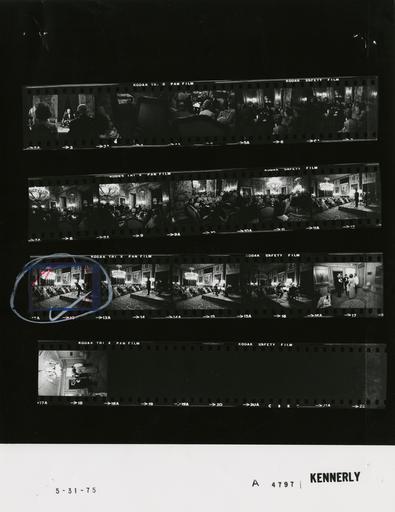 | Keywords: Ford A4797 NLGRF photo contact sheet (1975-05-31)(Gerald Ford Library).jpg White House Photographic Office WHPO is housed at the Gerald R Ford Presidential Library a branch of the National Archives and Records Administration NARA <br/><br/> This file is a 200 dpi photo contact sheet having images from roll of film A4797 of the August 9 1974 - January 20 1977 Gerald R Ford White House Photographic Office Series A0001-A9999 and B0001-B2886 photographs <br/><br/> The date on the photo contact sheet is the date the roll of film was processed not necessarily the date the photographs were taken See table below for additional details 1975-05-31 Gerald R Ford Presidential Library Image http //www fordlibrarymuseum gov/library/whphotos/A4797_NLGRF jpg A4797_NLGRF jpg from http //www fordlibrarymuseum gov/library/whphotos/19750531whpo pdf White House Photographs May 31 1975 of the http //www fordlibrarymuseum gov/Library/whphotos/whpo asp White House Photographic Collection page White House Photographic Office WHPO <br/> Creator David Hume Kennerly PD-USGov Institution Institution Gerald R Ford Presidential Library Table wikitable sortable + Photo contact sheet A4797 U S President Ford Administration Gerald R Ford Library Frame s Tone Subject proper Subject generic Names Geographic Location Photographer Date - 3-11 BW Trip to Spain - State Dinner Hosted by Generalissimo Mrs Francisco Franco seated around tables; GRF standing offering toast in first frame; various angles and distances; all not in every frame; formal wear GRF Betty Ford; Francisco Carmen Franco; Prince Juan Carlos Princess Sofia; Guests Madrid Spain Royal Palace - State Dining Room Kennerly 1975-05-31 - 12-16 BW Trip to Spain - Entertainment at State Dinner Hosted by Generalissimo Mrs Francisco Franco seated; Quartet on stage in foreground; all not in every frame; formal wear GRF Betty Ford; Francisco Carmen Franco; Prince Juan Carlos Princess Sofia; Kissinger; Guests; Cuarteto de Solistas de la Orquesta Sinfonica de la Radio Television Espanola Madrid Spain Royal Palace - Salon de Conciertos Kennerly 1975-05-31 - 17-18 BW Trip to Spain - Return to Residence Following State Dinner Hosted by Generalissimo Mrs Francisco Franco standing talking; BF back to camera; formal wear GRF Betty Ford Runsfeld O'Donnell Kollmorgen Madrid Spain Moncloa Palace - Guest Residence Kennerly 1975-05-31 Gerald R Ford Presidential Library and Museum-cooperation PD-USGov Contact sheets by the Ford White House May 1975 Photographs by David Hume Kennerly from 1975 |