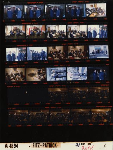 | Keywords: Ford A4894 NLGRF photo contact sheet (1975-05-30)(Gerald Ford Library).jpg White House Photographic Office WHPO is housed at the Gerald R Ford Presidential Library a branch of the National Archives and Records Administration NARA <br/><br/> This file is a 200 dpi photo contact sheet having images from roll of film A4894 of the August 9 1974 - January 20 1977 Gerald R Ford White House Photographic Office Series A0001-A9999 and B0001-B2886 photographs <br/><br/> The date on the photo contact sheet is the date the roll of film was processed not necessarily the date the photographs were taken See table below for additional details 1975-05-30 Gerald R Ford Presidential Library Image http //www fordlibrarymuseum gov/library/whphotos/A4894_NLGRF jpg A4894_NLGRF jpg from http //www fordlibrarymuseum gov/library/whphotos/19750530whpo pdf White House Photographs May 30 1975 of the http //www fordlibrarymuseum gov/Library/whphotos/whpo asp White House Photographic Collection page White House Photographic Office WHPO - Fitz-Patrick PD-USGov Institution Institution Gerald R Ford Presidential Library Table wikitable sortable + Photo contact sheet A4894 U S President Ford Administration Gerald R Ford Library Frame s Tone Subject proper Subject generic Names Geographic Location Photographer Date - 3A-6A Color Trip to Belgium -Prime Minister of Iceland greeting handshaking Kissinger Geir Hallgrimsson Brussels Belgium North Atlantic Treaty Organization NATO Headquarters - Ambassador Bruces's Office Fitz-Patrick 1975-05-30 - 7A-11A Color Trip to Belgium -Meeting with Prime Minister of Iceland seated talking around coffee table; various angles and distances; all not in every frame GRF Geir Hallgrimsson Kissinger Einar Agustsson Tomas Tomasson Horduth Helgason Bjorn Bjarnasson Scowcroft Sonnenfeldt Brussels Belgium North Atlantic Treaty Organization NATO Headquarters - Ambassador Bruces's Office Fitz-Patrick 1975-05-30 - 12A-14A Color Trip to Belgium handshaking by limo GRF others Brussels Belgium North Atlantic Treaty Organization NATO Headquarters Fitz-Patrick 1975-05-30 - 15A-16A Color Trip to Belgium -Meeting with Prime Minister of Norway seated near fireplace; all not in every frame GRF Trygve Bratelli Knute Frydenlund Kjeld Vibe Brussels Belgium American Embassy Residence - Meeting Room Fitz-Patrick 1975-05-30 - 17A Color Trip to Belgium -Following Meeting with Prime Minister of Norway standing by limo with Norwegian foreign minister GRF Einar Agustsson Kissinger Brussels Belgium American Embassy Residence - Outside Fitz-Patrick 1975-05-30 - 18A-19A Color Trip to Belgium -Meeting with President of the European Community Commission seated near fireplace; all not in every frame GRF Francois-Zavier Ortoli Christopher Soames Kissinger Brussels Belgium American Embassy Residence - Meeting Room Fitz-Patrick 1975-05-30 - 20A-21A Color Trip to Belgium -Following Meeting with President of the European Community Commission standing talking GRF Kissinger Brussels Belgium American Embassy Residence - Outside Fitz-Patrick 1975-05-30 - 22A Color Trip to Belgium -Manager of Hotel greeting handshaking GRF Sig S Front Brussels Belgium Brussels Sheraton Hotel Fitz-Patrick 1975-05-30 - 23A-32A Color Trip to Belgium -14th Press Conference GRF at podium speaking; media seated; various angles and distances GRF Media Brussels Belgium Brussels Sheraton Hotel - Press Center Fitz-Patrick 1975-05-30 Gerald R Ford Presidential Library and Museum-cooperation PD-USGov Contact sheets by the Ford White House May 1975 |
