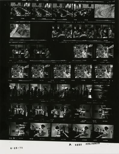 | Keywords: Ford A5222 NLGRF photo contact sheet (1975-06-25)(Gerald Ford Library).jpg White House Photographic Office WHPO is housed at the Gerald R Ford Presidential Library a branch of the National Archives and Records Administration NARA <br/><br/> This file is a 200 dpi photo contact sheet having images from roll of film A5222 of the August 9 1974 - January 20 1977 Gerald R Ford White House Photographic Office Series A0001-A9999 and B0001-B2886 photographs <br/><br/> The date on the photo contact sheet is the date the roll of film was processed not necessarily the date the photographs were taken See table below for additional details 1975-06-25 Gerald R Ford Presidential Library Image http //www fordlibrarymuseum gov/library/whphotos/A5222_NLGRF jpg A5222_NLGRF jpg from http //www fordlibrarymuseum gov/library/whphotos/19750625whpo pdf White House Photographs June 25 1975 of the http //www fordlibrarymuseum gov/Library/whphotos/whpo asp White House Photographic Collection page White House Photographic Office WHPO - Fitz-Patrick PD-USGov Institution Institution Gerald R Ford Presidential Library Table wikitable sortable + Photo contact sheet A5222 U S President Ford Administration Gerald R Ford Library Frame s Tone Subject proper Subject generic Names Geographic Location Photographer Date - 1A-4A BW Meeting with Selected Members of Congress on Regulatory Reform seated around table; all not in frames; mostly GRF Pastore Anderson GRF Rockefeller Morton Coleman Dunlop Levi Simon; Sens Fannin Ford Hartke Hruska Javits Kennedy Moss Pastore Pearson Percy Ribicoff Stafford; Reps Anderson Archer Cederberg Devine Horton Howard Jones Leggett Moss Rogers Thone Cabinet Room Fitz-Patrick 1975-06-25 - 5A-6A BW White House Swimming Pool Construction Construction Worker Swimming Pool Site - White House Grounds Fitz-Patrick 1975-06-25 - 7A BW Fitz-Patrick 1975-06-25 - 8A-12A BW standing around canvas mail bag; reaching into bag Unidentified Men Women The White House Fitz-Patrick 1975-06-25 - 13A BW Fitz-Patrick 1975-06-25 - 14A-20A BW Actress; Pet Golden Retriever seated on couch; playing with dog Deborah Raffin Liberty White House Photo Office Fitz-Patrick 1975-06-25 - 21A-35A BW Drop-by Visit by the Beach Boys - Musicians; Transcendental Meditation standing talking posing; various distances; only Susan in all frames; in East Room in final 4 frames; Susan and Beach Boy holding The TM Book - Transcendental Meditation How the Enjoy the Rest of Your Life Susan Ford Beach Boys The White House - Various Rooms Fitz-Patrick 1975-06-25 Gerald R Ford Presidential Library and Museum-cooperation PD-USGov Contact sheets by the Ford White House June 1975 |