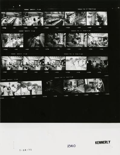 | Keywords: Ford A5410 NLGRF photo contact sheet (1975-07-05)(Gerald Ford Library).jpg White House Photographic Office WHPO is housed at the Gerald R Ford Presidential Library a branch of the National Archives and Records Administration NARA <br/><br/> This file is a 200 dpi photo contact sheet having images from roll of film A5410 of the August 9 1974 - January 20 1977 Gerald R Ford White House Photographic Office Series A0001-A9999 and B0001-B2886 photographs <br/><br/> The date on the photo contact sheet is the date the roll of film was processed not necessarily the date the photographs were taken See table below for additional details 1975-07-05 Gerald R Ford Presidential Library Image http //www fordlibrarymuseum gov/library/whphotos/A5410_NLGRF jpg A5410_NLGRF jpg from http //www fordlibrarymuseum gov/library/whphotos/19750705whpo pdf White House Photographs July 5 1975 of the http //www fordlibrarymuseum gov/Library/whphotos/whpo asp White House Photographic Collection page White House Photographic Office WHPO <br/> Creator David Hume Kennerly PD-USGov Institution Institution Gerald R Ford Presidential Library Table wikitable sortable + Photo contact sheet A5410 U S President Ford Administration Gerald R Ford Library Frame s Tone Subject proper Subject generic Names Geographic Location Photographer Date - 1-5 BW Trip to Camp David - Working Luncheon With the President of the Republic of Indonesia - Thurmont Maryland seated around large table; most are coatless; various angles and distances; all not in every frame GRF President Suharto; Widjojo Nitisastro Kissinger Scowcroft; White House Staff; Indonesian Staff Thurmont MD Camp David -Laurel Lodge - Patio Kennerly 1975-07-05 - 156 BW Trip to Camp David - Working Luncheon With the President of the Republic of Indonesia - Thurmont Maryland standing; aide helping Suharto with his coat GRF President Suharto; Aide Thurmont MD Camp David -Laurel Lodge - Patio Kennerly 1975-07-05 - 7-8 BW Trip to Camp David - Meeting With the President of the Republic of Indonesia - Thurmont Maryland seated talking; Liberty lying on floor GRF President Suharto Thurmont MD Camp David -Laurel Lodge - Living Room Kennerly 1975-07-05 - 10-13 BW Trip to Camp David - Pet Golden Retriever - Thurmont Maryland men seated women standing; BF petting dog GRF Betty Ford Sec Mrs Kissinger Scowcroft; Liberty Thurmont MD Camp David -Aspen Lodge - Living Room Kennerly 1975-07-05 - 14 BW Trip to Camp David - Prior to Departure of the President of the Republic of Indonesia -Thurmont Maryland holding camera; standing near deer Photographer Thurmont MD Camp David -Helipad Kennerly 1975-07-05 - 15 BW Return Flight Following Trip to Camp David seated talking; GRF's back to camera GRF Betty Ford Sec Mrs Kissinger Marine One Kennerly 1975-07-05 - 16-17 BW greeting handshaking standing talking GRF Unidentified Couple South Portico Kennerly 1975-07-05 - 18-20 BW working at desk Eisert White House Photo Office Kennerly 1975-07-05 Gerald R Ford Presidential Library and Museum-cooperation PD-USGov Contact sheets by the Ford White House July 1975 Photographs by David Hume Kennerly from 1975 |