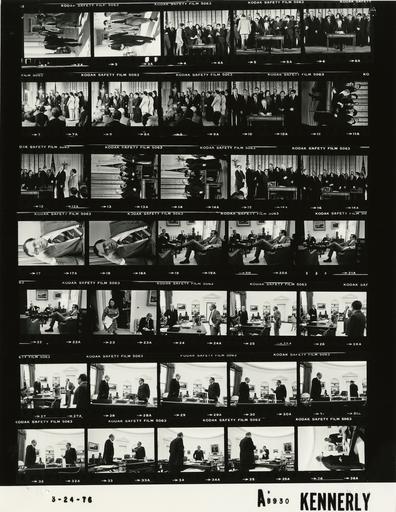 | Keywords: Ford A8930 NLGRF photo contact sheet (1976-03-24)(Gerald Ford Library).jpg White House Photographic Office WHPO is housed at the Gerald R Ford Presidential Library a branch of the National Archives and Records Administration NARA <br/><br/> This file is a 200 dpi photo contact sheet having images from roll of film A8930 of the August 9 1974 - January 20 1977 Gerald R Ford White House Photographic Office Series A0001-A9999 and B0001-B2886 photographs <br/><br/> The date on the photo contact sheet is the date the roll of film was processed not necessarily the date the photographs were taken See table below for additional details 1976-03-24 Gerald R Ford Presidential Library Image http //www fordlibrarymuseum gov/library/whphotos/A8930_NLGRF jpg A8930_NLGRF jpg from http //www fordlibrarymuseum gov/library/whphotos/19760324whpo pdf White House Photographs March 24 1976 of the http //www fordlibrarymuseum gov/Library/whphotos/whpo asp White House Photographic Collection page White House Photographic Office WHPO <br/> Creator David Hume Kennerly PD-USGov Institution Institution Gerald R Ford Presidential Library Table wikitable sortable + Photo contact sheet A8930 U S President Ford Administration Gerald R Ford Library Frame s Tone Subject proper Subject generic Names Geographic Location Photographer Date - 2-3 BW walking together GRF talking GRF Unidentified Men Colonnade Kennerly 1976-03-24 - 4-16 BW Signing Ceremony for H J Res 549 Establishing a Commonwealth of the Northern Mariana Islands; Office for Micronesian Status Negotiations; Marianas Political Status Commission Micronesian Congress Senators Mariana Islands District Legislature arriving remarks signing handshaking; various angles and distances; all not in every frame GRF Pangelinan Sen Tenorior Santon Sen Borja Nabors Willens Lapin Leonard White Amb F Haydn Williams Others East Room Kennerly 1976-03-24 - 17-18 BW Meeting with Secretary of Defense Secretary of State Chrm of Joint Chiefs of Staff Dir US Arms Control and Disarmament Agency National Security Adviser and Chief of Staff close up talking finger on forehead Rumsfeld Scheduling and Advance Office Kennerly 1976-03-24 - 19-23 BW Meeting with Secretary of Defense Secretary of State Chrm of Joint Chiefs of Staff Dir US Arms Control and Disarmament Agency National Security Adviser and Chief of Staff seated waiting talking; Rumsfeld in foreground; Cheney coming through Oval Office door; various angles and distances; all not in every frame Rumsfeld Ikle Gen George C Brown; Cheney Unidentified Woman Scheduling and Advance Office Kennerly 1976-03-24 - 24-25 BW Counsellor to the President standing at desk talking GRF Marsh Oval Office Kennerly 1976-03-24 - 26-27 BW Counsellor to the President; Secretary of State standing at desk talking; GRF looking unhappy; discussin SALT GRF Marsh Kissinger Oval Office Kennerly 1976-03-24 - 28-36 BW Counsellor to the President; Secretary of State standing at desk Kissinger talking GRF listening; discussing SALT GRF Kissinger Oval Office Kennerly 1976-03-24 Gerald R Ford Presidential Library and Museum-cooperation PD-USGov Contact sheets by the Ford White House March 1976 Photographs by David Hume Kennerly from 1976 |