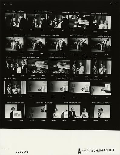 | Keywords: Ford A8993 NLGRF photo contact sheet (1976-03-29)(Gerald Ford Library).jpg White House Photographic Office WHPO is housed at the Gerald R Ford Presidential Library a branch of the National Archives and Records Administration NARA <br/><br/> This file is a 200 dpi photo contact sheet having images from roll of film A8993 of the August 9 1974 - January 20 1977 Gerald R Ford White House Photographic Office Series A0001-A9999 and B0001-B2886 photographs <br/><br/> The date on the photo contact sheet is the date the roll of film was processed not necessarily the date the photographs were taken See table below for additional details 1976-03-29 Gerald R Ford Presidential Library Image http //www fordlibrarymuseum gov/library/whphotos/A8993_NLGRF jpg A8993_NLGRF jpg from http //www fordlibrarymuseum gov/library/whphotos/19760329whpo pdf White House Photographs March 29 1976 of the http //www fordlibrarymuseum gov/Library/whphotos/whpo asp White House Photographic Collection page White House Photographic Office WHPO - Schumacher PD-USGov Institution Institution Gerald R Ford Presidential Library Table wikitable sortable + Photo contact sheet A8993 U S President Ford Administration Gerald R Ford Library Frame s Tone Subject proper Subject generic Names Geographic Location Photographer Date - 2A-6A Color Parsons School of Design Fashion Critics Award Show and Dinner-First Lady Receves Parsons Award; Parsons SchoolBoard Chrm Loeb President Everett Loeb presenting award standing together; formal wear Betty Ford Henry A Loeb Dr R John Everett; Others New York NY Parsons School of Design Schumacher 1976-03-29 - 7A B/W Parsons School of Design Fashion Critics Award Show and Dinner; First Lady Receves Parsons Award BF standing with student award winners; formal wear Keagy Rosen Jones Betty Ford Hollingsworth Sabol; Classen Dane Dwyer Manley Pastor Smalls Vitiello New York NY Parsons School of Design Schumacher 1976-03-29 - 8A-12A B/W Parsons School of Design Fashion Critics Award Show and Dinner-First Lady Receves Parsons Award; Fashion Designers BF standing with critics fashion designers; formal wear Donna Karan Donald Brooks Albert Capraro Betty Ford Kasper Kay Unger Chester Weinberg; Liz Claiborne Shannon Rodgers Leo Narducci Anthony Muto Calvin Klein New York NY Parsons School of Design Schumacher 1976-03-29 - 13A-17A B/W Parsons School of Design Fashion Critics Award Show and Dinner-First Lady Receves Parsons Award standing onstage by flag holding award; formal wear Betty Ford New York NY Parsons School of Design Schumacher 1976-03-29 - 18A-26A B/W Parsons School of Design Fashion Critics Award Show and Dinner-First Lady Receves Parsons Award-Remarks BF at microphone; Parsons graphics on podium and background; departing with Loeb; Loeb not in every frame; formal wear Betty Ford; Henry A Loeb New York NY Parsons School of Design Schumacher 1976-03-29 Gerald R Ford Presidential Library and Museum-cooperation PD-USGov Contact sheets by the Ford White House March 1976 |