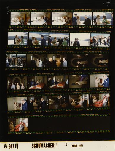 | Keywords: Ford A9117 NLGRF photo contact sheet (1976-04-05)(Gerald Ford Library).jpg White House Photographic Office WHPO is housed at the Gerald R Ford Presidential Library a branch of the National Archives and Records Administration NARA <br/><br/> This file is a 200 dpi photo contact sheet having images from roll of film A9117 of the August 9 1974 - January 20 1977 Gerald R Ford White House Photographic Office Series A0001-A9999 and B0001-B2886 photographs <br/><br/> The date on the photo contact sheet is the date the roll of film was processed not necessarily the date the photographs were taken See table below for additional details 1976-04-05 Gerald R Ford Presidential Library Image http //www fordlibrarymuseum gov/library/whphotos/A9117_NLGRF jpg A9117_NLGRF jpg from http //www fordlibrarymuseum gov/library/whphotos/19760405whpo pdf White House Photographs April 5 1976 of the http //www fordlibrarymuseum gov/Library/whphotos/whpo asp White House Photographic Collection page White House Photographic Office WHPO - Schumacher PD-USGov Institution Institution Gerald R Ford Presidential Library Table wikitable sortable + Photo contact sheet A9117 U S President Ford Administration Gerald R Ford Library Frame s Tone Subject proper Subject generic Names Geographic Location Photographer Date - 3A-5A Color First Lady's Trip to Wisconsin-Aboard Plane individual photo ops on plane Betty Ford Unidentified Men Milwaukee WI Aboard C-9 enroute to Schumacher 1976-04-05 - 6A-13A Color First Lady's Trip to Wisconsin-Airport Arrival; WI PFC Chairman Knowles greetingson tarmac by former WI Governor Knowles handshaking; Aircraft in background in some frames Betty Ford Warren Knowles Others Milwaukee WI Mitchell Field Schumacher 1976-04-05 - 14A-28A Color First Lady's Trip to Wisconsin-Tour Marquette University's St Joan of Arc Chapel touring chapel with former Governor/PFC Chairman Knowles and PFC volunteers looking at items Betty Ford Frank Tripp Warren Knowles Mike Meagher Mary Lee Dorsey Milwaukee WI Marquette University - Campus - St Joan of Arc Chapel Schumacher 1976-04-05 Gerald R Ford Presidential Library and Museum-cooperation PD-USGov Contact sheets by the Ford White House April 1976 |