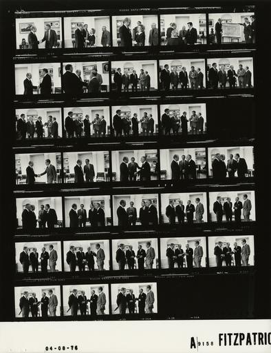 | Keywords: Ford A9158 NLGRF photo contact sheet (1976-04-08)(Gerald Ford Library).jpg White House Photographic Office WHPO is housed at the Gerald R Ford Presidential Library a branch of the National Archives and Records Administration NARA <br/><br/> This file is a 200 dpi photo contact sheet having images from roll of film A9158 of the August 9 1974 - January 20 1977 Gerald R Ford White House Photographic Office Series A0001-A9999 and B0001-B2886 photographs <br/><br/> The date on the photo contact sheet is the date the roll of film was processed not necessarily the date the photographs were taken See table below for additional details 1976-04-08 Gerald R Ford Presidential Library Image http //www fordlibrarymuseum gov/library/whphotos/A9158_NLGRF jpg A9158_NLGRF jpg from http //www fordlibrarymuseum gov/library/whphotos/19760408whpo pdf White House Photographs April 8 1976 of the http //www fordlibrarymuseum gov/Library/whphotos/whpo asp White House Photographic Collection page White House Photographic Office WHPO - Fitz-Patrick PD-USGov Institution Institution Gerald R Ford Presidential Library Table wikitable sortable + Photo contact sheet A9158 U S President Ford Administration Gerald R Ford Library Frame s Tone Subject proper Subject generic Names Geographic Location Photographer Date - 3 BW Congressional Hour Present Crocheted Painting; US Senator from Maine ME standing handshaking GRF Sen William D Hathaway Oval Office Fitz-Patrick 1976-04-08 - 4-7 BW Congressional Hour Present Crocheted Painting; US Senator from Maine ME ; Resident of Caribou Maine Husband Son standing handshaking GRF Sen William D Hathaway Mrs Faris Stella Corey Faris Corey Lionel Corey Oval Office Fitz-Patrick 1976-04-08 - 8 BW Congressional Hour Present 150th Anniversary Coin Set; US Senator from Connecticut CT standing handshaking GRF Sen Lowell Weicker Jr Oval Office Fitz-Patrick 1976-04-08 - 9-16 BW Congressional Hour Present 150th Anniversary Coin Set; US Senator from Connecticut CT entering handshaking; standing holding coin set; all not in every frame GRF Sen Lowell Weicker Jr Jack Elmgren Leonard Henry Bucher John Andrews Johnson Oval Office Fitz-Patrick 1976-04-08 - 17 BW Fitz-Patrick 1976-04-08 - 18-19 BW Congressional Hour Present 2 Billionth Copy of New Testament by American Bible Society; US Senator from Rhode Island RI standing handshaking GRF Sen Claiborne Pell Oval Office Fitz-Patrick 1976-04-08 - 20-35 BW Congressional Hour Present 2 Billionth Copy of New Testament by American Bible Society; US Senator from Rhode Island RI standing holding coin set; all not in every frame GRF Sen Claiborne Pell; Edmund Wagner James Nettinga Oval Office Fitz-Patrick 1976-04-08 Gerald R Ford Presidential Library and Museum-cooperation PD-USGov Contact sheets by the Ford White House April 1976 |