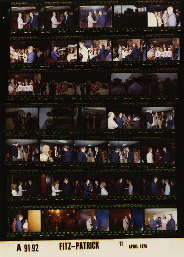 | Keywords: Ford A9192 NLGRF photo contact sheet (1976-04-09)(Gerald Ford Library).jpg White House Photographic Office WHPO is housed at the Gerald R Ford Presidential Library a branch of the National Archives and Records Administration NARA <br/><br/> This file is a 200 dpi photo contact sheet having images from roll of film A9192 of the August 9 1974 - January 20 1977 Gerald R Ford White House Photographic Office Series A0001-A9999 and B0001-B2886 photographs <br/><br/> The date on the photo contact sheet is the date the roll of film was processed not necessarily the date the photographs were taken See table below for additional details 1976-04-09 Gerald R Ford Presidential Library Image http //www fordlibrarymuseum gov/library/whphotos/A9192_NLGRF jpg A9192_NLGRF jpg from http //www fordlibrarymuseum gov/library/whphotos/19760409whpo pdf White House Photographs April 9 1976 of the http //www fordlibrarymuseum gov/Library/whphotos/whpo asp White House Photographic Collection page White House Photographic Office WHPO - Fitz-Patrick PD-USGov Institution Institution Gerald R Ford Presidential Library Table wikitable sortable + Photo contact sheet A9192 U S President Ford Administration Gerald R Ford Library Frame s Tone Subject proper Subject generic Names Geographic Location Photographer Date - 3-5 Color Trip to Texas; Hotel Arrival - San Antonio Texas standing handshaking GRF Unidentified Man Secret Service San Antonio TX Hilton Palacio del Rio Hotel Fitz-Patrick 1976-04-09 - 6 Color Trip to Texas; Convention Center Arrival - San Antonio Texas standing by limousine GRF Unidentified Man San Antonio TX San Antonio Convention Center Fitz-Patrick 1976-04-09 - 7-8 Color Trip to Texas; Reception for Texas Republicans; Texas State PFC Finance Chairman/President Trammell Crow Real Estate in Dallas Texas; US Senator from Texas TX - San Antonio Texas greeting handshaking; 7 Crow GRF handshaking GRF Trammell Crow Sen John Tower Guests San Antonio TX San Antonio Convention Center -VIP Reception Room Fitz-Patrick 1976-04-09 - 9-13 Color Trip to Texas; Reception for Texas State President Ford Committee PFC Staff and Volunteers - San Antonio Texas handshaking; GRF standing holding guitar with mariachi band; handshaking with children; children standing together wearing F-O-R-D shirts wearing campaign hats; campaign paraphernalia GRF Volunteerss Staff Musicians Children San Antonio TX San Antonio Convention Center -Rehearsal Hall Fitz-Patrick 1976-04-09 - 14-20 Color Trip to Texas; Airport Departure - San Antonio Texas standing on tarmac handshaking GRF Police Officers Others Military San Antonio TX Kelly Air Force Base Fitz-Patrick 1976-04-09 - 27-36 Color Trip to Texas; Reception for Texas State PFC Finance Committee and Photo Op for State PFC delegates - San Antonio Texas individual photo ops; standing handshaking GRF Delegates San Antonio TX Hilton Palacio del Rio Hotel Fitz-Patrick 1976-04-09 - 21-26 Color Trip to Texas standing with family and baggage; boy with baseball GRF Unidentified Family Dallas TX Fairmont Hotel Fitz-Patrick 1976-04-10 - 37 Color Trip to Texas; Presidential Suite -San Antonio Texas standing talking GRF 2 Unidentified Women 1 man San Antonio TX Hilton Palacio del Rio Hotel - Presidential Suite Fitz-Patrick 1976-04-10 Gerald R Ford Presidential Library and Museum-cooperation PD-USGov Contact sheets by the Ford White House April 1976 |