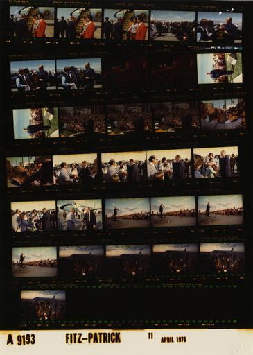 | Keywords: Ford A9193 NLGRF photo contact sheet (1976-04-10)(Gerald Ford Library).jpg White House Photographic Office WHPO is housed at the Gerald R Ford Presidential Library a branch of the National Archives and Records Administration NARA <br/><br/> This file is a 200 dpi photo contact sheet having images from roll of film A9193 of the August 9 1974 - January 20 1977 Gerald R Ford White House Photographic Office Series A0001-A9999 and B0001-B2886 photographs <br/><br/> The date on the photo contact sheet is the date the roll of film was processed not necessarily the date the photographs were taken See table below for additional details 1976-04-10 Gerald R Ford Presidential Library Image http //www fordlibrarymuseum gov/library/whphotos/A9193_NLGRF jpg A9193_NLGRF jpg from http //www fordlibrarymuseum gov/library/whphotos/19760410whpo pdf White House Photographs April 10 1976 of the http //www fordlibrarymuseum gov/Library/whphotos/whpo asp White House Photographic Collection page White House Photographic Office WHPO - Fitz-Patrick PD-USGov Institution Institution Gerald R Ford Presidential Library Table wikitable sortable + Photo contact sheet A9193 U S President Ford Administration Gerald R Ford Library Frame s Tone Subject proper Subject generic Names Geographic Location Photographer Date - 3-5 Color Trip to Texas-Airport Departure; Airport Managers V P Southwest Airlines handshaking on tarmac at foot of Air Force One ramp GRF Howard McGready Cary Green Jack Mercer Dallas TX Love Field Fitz-Patrick 1976-04-10 - 6 Color Trip to Texas-Q A Session with Press-Remarks; Airport Arrival all standing on tarmac; GRF at microphone;plane wings in background GRF Media Secret Service El Paso TX El Paso International Airport Fitz-Patrick 1976-04-10 - 7-9 Color Trip to Texas-Airport Arrival; El Paso Jaycees Tshirt Presentation standing by limousine on tarmac GRF holding El Paso Jaycees t-shirt GRF 2 Unidentified Men El Paso TX El Paso International Airport Fitz-Patrick 1976-04-10 - 10-11 Color Trip to Texas; 78th Annual Convention of Texas Grain and Feed Association; Remarks; US Senator from Texas TX GRF at podium GRF Sen John Tower George W Jones Robert L Parker Raymond R Nolen Frank Hemmen El Paso TX El Paso Civic Center-Auditorium Fitz-Patrick 1976-04-10 - 12-13 Color Trip to Texas-El Paso Bicentennial Commemoration Honoring Servicemen and Unveiling of Dedication Plaque for War Memorial standing by dedication plaque GRF El Paso TX War Memorial Plaza Fitz-Patrick 1976-04-10 - 14-16 Color Trip to Texas-El Paso Bicentennial Commemoration Honoring Servicemen and Unveiling of Dedication Plaque for War Memorial-Remarks standing at podium before standing crowd; city of El Paso in background GRF Crowd El Paso TX War Memorial Plaza Fitz-Patrick 1976-04-10 - 17-18 Color Trip to Texas-El Paso Bicentennial Commemoration Honoring Servicemen and Unveiling of Dedication Plaque for War Memorial-departing from working crowd in downtown El Paso GRF Crowd El Paso TX War Memorial Plaza Fitz-Patrick 1976-04-10 - 19-23 Color Trip to Texas-Airport Departure all standing on tarmac; GRF handshaking with family; GRF Unidentified Family; Media Secret Service Amarillo TX Amarillo Air Terminal Fitz-Patrick 1976-04-10 - 24 Color Trip to Texas-Airport Departure standing handshaking in front of plane GRF Unidentified Man Air Force One Amarillo TX Amarillo Air Terminal Fitz-Patrick 1976-04-10 - 25-28 Color Trip to Texas-Airport Arrival-Remarks GRF standing on platform speaking to roped in crowd; Welcome to Amarillo banner; sunset in background GRF Crowd Secret Service Amarillo TX Amarillo Air Terminal Fitz-Patrick 1976-04-10 - 29-33 Color Trip to Texas-Airport Arrival-Q A Session with Press; Air Force One; plane GRF standing before a half circle of reporters talking; dramatic lighting; Air Force One airplane standing on tarmac in background; sunset in background GRF Media Air Force One Amarillo TX Amarillo Air Terminal Fitz-Patrick 1976-04-10 Gerald R Ford Presidential Library and Museum-cooperation PD-USGov Contact sheets by the Ford White House April 1976 |