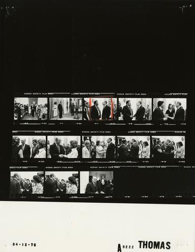 | Keywords: Ford A9222 NLGRF photo contact sheet (1976-04-12)(Gerald Ford Library).jpg White House Photographic Office WHPO is housed at the Gerald R Ford Presidential Library a branch of the National Archives and Records Administration NARA <br/><br/> This file is a 200 dpi photo contact sheet having images from roll of film A9222 of the August 9 1974 - January 20 1977 Gerald R Ford White House Photographic Office Series A0001-A9999 and B0001-B2886 photographs <br/><br/> The date on the photo contact sheet is the date the roll of film was processed not necessarily the date the photographs were taken See table below for additional details 1976-04-12 Gerald R Ford Presidential Library Image http //www fordlibrarymuseum gov/library/whphotos/A9222_NLGRF jpg A9222_NLGRF jpg from http //www fordlibrarymuseum gov/library/whphotos/19760412whpo pdf White House Photographs April 12 1976 of the http //www fordlibrarymuseum gov/Library/whphotos/whpo asp White House Photographic Collection page White House Photographic Office WHPO - Thomas PD-USGov Institution Institution Gerald R Ford Presidential Library Table wikitable sortable + Photo contact sheet A9222 U S President Ford Administration Gerald R Ford Library Frame s Tone Subject proper Subject generic Names Geographic Location Photographer Date - 5 BW Reception for President Ford Committee PFC Staff and Volunteers Republican National Committee Staff and White House Staff entering; audience standing applauding GRF Betty Ford East Room Thomas 1976-04-12 - 6 BW Reception for President Ford Committee PFC Staff and Volunteers Republican National Committee Staff and White House Staff- Remarks; PFC Chairman Morton standing onstage Morton introducing GRF Betty Ford Rogers C B Morton East Room Thomas 1976-04-12 - 7-8 BW Reception for President Ford Committee PFC Staff and Volunteers Republican National Committee Staff and White House Staff - Special Assistant to the President for Minority Affairs standing talking GRF John Calhoun State Dining Room Thomas 1976-04-12 - 9-17 BW Reception for President Ford Committee PFC Staff and Volunteers Republican National Committee Staff and White House Staff mingling GRF Guests State Dining Room Thomas 1976-04-12 Gerald R Ford Presidential Library and Museum-cooperation PD-USGov Contact sheets by the Ford White House April 1976 |