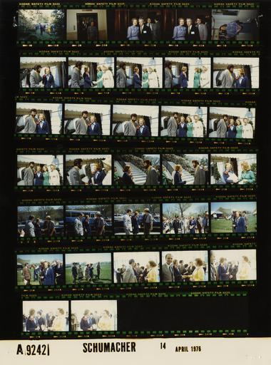 Keywords: Ford A9242 NLGRF photo contact sheet (1976-04-13)(Gerald Ford Library).jpg White House Photographic Office WHPO is housed at the Gerald R Ford Presidential Library a branch of the National Archives and Records Administration NARA <br/><br/> This file is a 200 dpi photo contact sheet having images from roll of film A9242 of the August 9 1974 - January 20 1977 Gerald R Ford White House Photographic Office Series A0001-A9999 and B0001-B2886 photographs <br/><br/> The date on the photo contact sheet is the date the roll of film was processed not necessarily the date the photographs were taken See table below for additional details 1976-04-13 Gerald R Ford Presidential Library Image http //www fordlibrarymuseum gov/library/whphotos/A9242_NLGRF jpg A9242_NLGRF jpg from http //www fordlibrarymuseum gov/library/whphotos/19760413whpo pdf White House Photographs April 13 1976 of the http //www fordlibrarymuseum gov/Library/whphotos/whpo asp White House Photographic Collection page White House Photographic Office WHPO <br/> Creator David Hume Kennerly PD-USGov Institution Institution Gerald R Ford Presidential Library Table wikitable sortable + Photo contact sheet A9242 U S President Ford Administration Gerald R Ford Library Frame s Tone Subject proper Subject generic Names Geographic Location Photographer Date - 1 BW Q A Session with Members of American Society of Newspaper Editors long view GRF at podium large crowd gathered;leafy trees GRF Editors Secret Service Rose Garden Kennerly 1976-04-13 - 2 BW Reception for Members of American Society of Newspaper Editors exiting elevator GRF Betty Ford State Floor-Elevator Kennerly 1976-04-13 - 3-4 BW Reception for Members of American Society of Newspaper Editors standing together in doorway Betty Ford Unidentified Man Secret Service State Floor-Elevator Kennerly 1976-04-13 - 6-20 Color First Lady's Visit to the New White House Visitors' Waiting Area-Departing For; Greeting White House Visitors handshaking posing next to awning; man with beard;all not in every frame Betty Ford Unidentified Man 2 Women North Entrance Schumacher 1976-04-14 - 21-23 Color First Lady's Visit to the New White House Visitors' Waiting Area-Departing For; National Park Service NPS Ranger in Charge of Visitor's Waiting Area; Director of the Visitors' Office Farrell standing by limousine handshaking Betty Ford Ranger Joe Lawler Mike Farrell South Driveway Schumacher 1976-04-14 - 24-32 Color First Lady's Visit to the New White House Visitors' Waiting Area-Departing For; National Park Service NPS Ranger in Charge of Visitor's Waiting Area; Director of the Visitors' Office Farrell walking on grounds Ranger pointing greeting others; Farrell 29 ; all not in evert frame Betty Ford Mike Farrell Ranger Joe Lawler Military Secret Service Crowd Helen Thomas Weidenfeld Washington DC The Ellipse Schumacher 1976-04-14 Gerald R Ford Presidential Library and Museum-cooperation PD-USGov Contact sheets by the Ford White House April 1976 Photographs by David Hume Kennerly from 1976