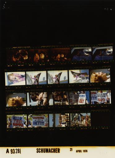 | Keywords: Ford A9328 NLGRF photo contact sheet (1976-04-19)(Gerald Ford Library).jpg White House Photographic Office WHPO is housed at the Gerald R Ford Presidential Library a branch of the National Archives and Records Administration NARA <br/><br/> This file is a 200 dpi photo contact sheet having images from roll of film A9328 of the August 9 1974 - January 20 1977 Gerald R Ford White House Photographic Office Series A0001-A9999 and B0001-B2886 photographs <br/><br/> The date on the photo contact sheet is the date the roll of film was processed not necessarily the date the photographs were taken See table below for additional details 1976-04-19 Gerald R Ford Presidential Library Image http //www fordlibrarymuseum gov/library/whphotos/A9328_NLGRF jpg A9328_NLGRF jpg from http //www fordlibrarymuseum gov/library/whphotos/19760419whpo pdf White House Photographs April 19 1976 of the http //www fordlibrarymuseum gov/Library/whphotos/whpo asp White House Photographic Collection page White House Photographic Office WHPO - Schumacher PD-USGov Institution Institution Gerald R Ford Presidential Library Table wikitable sortable + Photo contact sheet A9328 U S President Ford Administration Gerald R Ford Library Frame s Tone Subject proper Subject generic Names Geographic Location Photographer Date - 2-4 Color First Lady's Campaign Trip to Texas; King's Council Reception; Remarks - San Antonio Texas Betty standing at microphone midrange; bass player tips sombrero;applauding Betty Ford Musician Unidentified Woman Crowd San Antonio TX St Anthony Hotel - Texas Cavaliers Room Schumacher 1976-04-19 - 5-7 Color First Lady Campaign Trip to Texas; First Momma Talking on CB Radio Enroute to Airport - San Antonio Texas seated in limousine taking on CB Radio Betty Ford San Antonio TX Enroute San Antonio International Airport Schumacher 1976-04-20 - 8-10 Color First Lady's Campaign Trip to Texas; Airport Departure - San Antonio Texas standing at door of C-9 Aircraft holding flowers waving Betty Ford San Antonio TX San Antonio International Airport Schumacher 1976-04-20 - 11-20 Color First Lady Campaign Trip to Texas-Bicentennial Celebration for 140th Anniversary of Battle of San Jacinto and 28th Anniversary of Battleship Presentation to Texas--First Lady Remarks; campaign placards; senior citizens elderly; CB Radio; First Momma aboard battleship close-up profiles and midrange view of BF at microphone seated with guests; crowd holding campaign signs on grass Great Grannies Love Jerry Golden Age Manor Republicans for Ford Hello First Momma Grandpas Like Betty Betty Ford; Unidentified Woman child; Crowd Boy Scout Houston TX San Jacinto Battleground Park-Aboard USS Texas Schumacher 1976-04-21 Gerald R Ford Presidential Library and Museum-cooperation PD-USGov Contact sheets by the Ford White House April 1976 |
