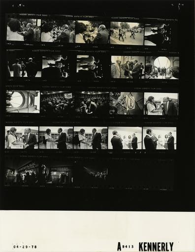 | Keywords: Ford A9413 NLGRF photo contact sheet (1976-04-29)(Gerald Ford Library).jpg White House Photographic Office WHPO is housed at the Gerald R Ford Presidential Library a branch of the National Archives and Records Administration NARA <br/><br/> This file is a 200 dpi photo contact sheet having images from roll of film A9413 of the August 9 1974 - January 20 1977 Gerald R Ford White House Photographic Office Series A0001-A9999 and B0001-B2886 photographs <br/><br/> The date on the photo contact sheet is the date the roll of film was processed not necessarily the date the photographs were taken See table below for additional details 1976-04-29 Gerald R Ford Presidential Library Image http //www fordlibrarymuseum gov/library/whphotos/A9413_NLGRF jpg A9413_NLGRF jpg from http //www fordlibrarymuseum gov/library/whphotos/19760429whpo pdf White House Photographs April 29 1976 of the http //www fordlibrarymuseum gov/Library/whphotos/whpo asp White House Photographic Collection page White House Photographic Office WHPO <br/> Creator David Hume Kennerly PD-USGov Institution Institution Gerald R Ford Presidential Library Table wikitable sortable + Photo contact sheet A9413 U S President Ford Administration Gerald R Ford Library Frame s Tone Subject proper Subject generic Names Geographic Location Photographer Date - 2A-5A BW Primary Campaign Trip to Texas; Arriving for Baylor University Remarks - Waco Texas GRF working crowd at rope walking down street waving to crowd GRF Students Secret Service Waco TX Baylor University Kennerly 1976-04-29 - 6A-9A BW Primary Campaign Trip to Texas; Arriving for Baylor University Remarks - Waco Texas GRF at podium making remarks wearing Our Bear in the White House jacket; all standing on stage with backs to camera GRF Others Waco TX Baylor University Kennerly 1976-04-29 - 10A BW Primary Campaign Trip to Texas; Departing from Baylor University Remarks - Waco Texas handshaking outside GRF Others Waco TX Baylor University Kennerly 1976-04-29 - 11A-12A BW Primary Campaign Trip to Texas; Ribbon Cutting Ceremony Officially Starting Waco's Bicentennial Restoration Project; Remarks - Waco Texas standing on bridge GRF making remarks GRF Mayor M A Smith Roger Conger Sen John Tower Media Waco TX Waco Suspension Bridge - 1st Bridge Streets Kennerly 1976-04-29 - 13A-15A BW Primary Campaign Trip to Texas; Reception for Community Leaders Business Leaders PFC and Republican Leaders and Delegates - Waco Texas GRF standing in a sea of people handshaking; signs We Love Betty llittle girl holding Ford sign GRF Crowd Waco TX Waco Convention Center Kennerly 1976-04-29 - 16A-19A BW Primary Campaign Trip to Texas; Airport Departure - Waco Texas standing on tarmac talking GRF Unidentified Woman; Others Waco TX Texas State Technical Institute - James Connally Field Kennerly 1976-04-29 - 20A-21A BW Primary Campaign Trip to Texas-North Park Shopping Center Mall Remarks-prior to standing talking in hallway GRF Mr Mrs Tom Landry Mayor Mrs Robert Folsom Dallas TX North Park Shopping Mall Kennerly 1976-04-29 - 22A-24A BW Primary Campaign Trip to Texas-North Park Shopping Center Mall Remarks-prior to all onstage GRF waving making remarks GRF Mr Mrs Roy Nasher Mr Mrs Joseph Barta Sen John Tower Dallas TX North Park Shopping Mall Kennerly 1976-04-29 Gerald R Ford Presidential Library and Museum-cooperation PD-USGov Contact sheets by the Ford White House April 1976 Photographs by David Hume Kennerly from 1976 |