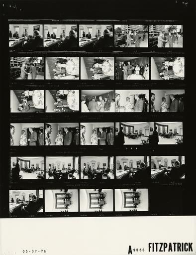 | Keywords: Ford A9556 NLGRF photo contact sheet (1976-05-06)(Gerald Ford Library).jpg White House Photographic Office WHPO is housed at the Gerald R Ford Presidential Library a branch of the National Archives and Records Administration NARA <br/><br/> This file is a 200 dpi photo contact sheet having images from roll of film A9556 of the August 9 1974 - January 20 1977 Gerald R Ford White House Photographic Office Series A0001-A9999 and B0001-B2886 photographs <br/><br/> The date on the photo contact sheet is the date the roll of film was processed not necessarily the date the photographs were taken See table below for additional details 1976-05-06 Gerald R Ford Presidential Library Image http //www fordlibrarymuseum gov/library/whphotos/A9556_NLGRF jpg A9556_NLGRF jpg from http //www fordlibrarymuseum gov/library/whphotos/19760506whpo pdf White House Photographs May 6 1976 of the http //www fordlibrarymuseum gov/Library/whphotos/whpo asp White House Photographic Collection page White House Photographic Office WHPO - Fitz-Patrick PD-USGov Institution Institution Gerald R Ford Presidential Library Table wikitable sortable + Photo contact sheet A9556 U S President Ford Administration Gerald R Ford Library Frame s Tone Subject proper Subject generic Names Geographic Location Photographer Date - 2-5 BW Meeting with California Finance Chairman for PFC and President of Carter Hawley Hale Department Stores Los Angeles seated at corner of desk GRF Edward W Carter Oval Office Fitz-Patrick 1976-05-06 - 6-8 BW Michigan Association of Broadcasters Reception-Arrival; WOOD-TV corresp/past MAB presidentLareau; WJR corresp/MAB board member James; hotel director Najm greeting at curb; limousine in background GRF Michael Lareau William James Michael Najm Washington DC Madison Hotel Fitz-Patrick 1976-05-06 - 9-15 BW Michigan Association of Broadcasters Reception-GRF Receives Outstanding Citizen of Michigan Award presenting GRF with silver punch bowl and cups on table MacDonald may or may not be shown GRF Unidentified Men Women Kenneth MacDonald Washington DC Madison Hotel - Dolley Madison Room Fitz-Patrick 1976-05-06 - 16-20 BW Michigan Association of Broadcasters Reception standing talking in doorway GRF Unidentified Woman Washington DC Madison Hotel - Dolley Madison Room Fitz-Patrick 1976-05-06 - 21-25 BW Meeting to Discuss Nuclear Safeguards with Sen Baker Exec Dir Joint Committee on Atomic Energy Murphy Counsellor and Cabinet/Staff Secretary; US Senator from Tennessee TN seated at desk; Lincoln sculpture on left GRF Sen Howard H Baker Jr George F Murphy Jr Marsh Connor Oval Office Fitz-Patrick 1976-05-07 - 26-28 BW Meeting to Discuss Nuclear Safeguards with Sen Baker Exec Dir Joint Committee on Atomic Energy Murphy Counsellor and Cabinet/Staff Secretary; US Senator from Tennessee TN seated at corner of desk camera on Baker GRF Sen Howard H Baker Jr Oval Office Fitz-Patrick 1976-05-07 - 29-31 BW Meeting to Discuss Nuclear Safeguards with Sen Baker Exec Dir Joint Committee on Atomic Energy Murphy Counsellor and Cabinet/Staff Secretary; US Senator from Tennessee TN seated around desk camera facing GRF long view vertical frame GRF Sen Howard H Baker Jr George F Murphy Jr Marsh Connor Oval Office Fitz-Patrick 1976-05-07 - 12-15 BW Meeting to Discuss Nuclear Safeguards with Sen Baker Exec Dir Joint Committee on Atomic Energy Murphy Counsellor and Cabinet/Staff Secretary; US Senator from Tennessee TN seated at corner of desk camera on Baker GRF Sen Howard H Baker Jr Oval Office Fitz-Patrick 1976-05-07 Gerald R Ford Presidential Library and Museum-cooperation PD-USGov Contact sheets by the Ford White House May 1976 |