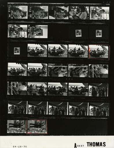 | Keywords: Ford A9597 NLGRF photo contact sheet (1976-04-29)(Gerald Ford Library).jpg White House Photographic Office WHPO is housed at the Gerald R Ford Presidential Library a branch of the National Archives and Records Administration NARA <br/><br/> This file is a 200 dpi photo contact sheet having images from roll of film A9597 of the August 9 1974 - January 20 1977 Gerald R Ford White House Photographic Office Series A0001-A9999 and B0001-B2886 photographs <br/><br/> The date on the photo contact sheet is the date the roll of film was processed not necessarily the date the photographs were taken See table below for additional details 1976-04-29 Gerald R Ford Presidential Library Image http //www fordlibrarymuseum gov/library/whphotos/A9597_NLGRF jpg A9597_NLGRF jpg from http //www fordlibrarymuseum gov/library/whphotos/19760429whpo pdf White House Photographs April 29 1976 of the http //www fordlibrarymuseum gov/Library/whphotos/whpo asp White House Photographic Collection page White House Photographic Office WHPO - Thomas PD-USGov Institution Institution Gerald R Ford Presidential Library Table wikitable sortable + Photo contact sheet A9597 U S President Ford Administration Gerald R Ford Library Frame s Tone Subject proper Subject generic Names Geographic Location Photographer Date - 3A-9A BW SecState Trip to Africa--SecState Trip to Africa--Zairian Native Arts and Crafts; Sculpture carving wood sculptures in sculpture studio Young Zairian Women man Kinshasa Zaire Africa Sculpture Studio Thomas 1976-04-29 - 10A BW SecState Trip to Africa Kinshasa Zaire Thomas 1976-04-29 - 11A-13A BW SecState Trip to Africa-Unidentified Snapshot Polaroid snapshot of four persons standing in a marketplace Unidentified Africans Kinshasa Zaire Africa Thomas 1976-04-29 - 14A-34A BW SecState Trip to Africa; Breakfast Meeting with Zairian President Mobutu Sese Seko-final meeting; Asst SecState for African Affairs Schaufele; Zairian Foreign Minister Karl-i-Bond seated at round table on grass by river; standing on grass under awning; Schaufele Nguza frames 33 and 34 Kissinger Mobutu Sese Seko Jean Nguza Karl-i-Bond; Interpreter; Amb Walter Cutler William E Schaufele Jr Peter J Rodman African Officials Kinshasa Zaire Africa President's Palace - Pavillon on grass overlooking Congo River Thomas 1976-04-30 Gerald R Ford Presidential Library and Museum-cooperation PD-USGov Contact sheets by the Ford White House April 1976 |