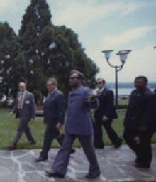 | Keywords: Ford A9614 NLGRF photo contact sheet (1976-04-28b)(Gerald Ford Library) (cropped).jpg White House Photographic Office WHPO is housed at the Gerald R Ford Presidential Library a branch of the National Archives and Records Administration NARA <br/><br/> This file is a 200 dpi photo contact sheet having images from roll of film A9614 of the August 9 1974 - January 20 1977 Gerald R Ford White House Photographic Office Series A0001-A9999 and B0001-B2886 photographs <br/><br/> The date on the photo contact sheet is the date the roll of film was processed not necessarily the date the photographs were taken See table below for additional details 1976-04-28 Gerald R Ford Presidential Library Image http //www fordlibrarymuseum gov/library/whphotos/A9614_NLGRF jpg A9614_NLGRF jpg from http //www fordlibrarymuseum gov/library/whphotos/19760428whpo pdf White House Photographs April 28 1976 of the http //www fordlibrarymuseum gov/Library/whphotos/whpo asp White House Photographic Collection page White House Photographic Office WHPO - Thomas PD-USGov Ford A9614 NLGRF photo contact sheet 1976-04-28 Gerald Ford Library jpg Ford A9614 NLGRF photo contact sheet 1976-04-28a Gerald Ford Library cropped jpg Institution Institution Gerald R Ford Presidential Library Table wikitable sortable + Photo contact sheet A9614 U S President Ford Administration Gerald R Ford Library Frame s Tone Subject proper Subject generic Names Geographic Location Photographer Date - 3A-4A Color SecState Trip to Africa--Post-Breakfast Meeting with Zairian Pres Mobutu Sese Seko-first meeting; Zairian Foreign Minister Karl-i-Bond seated in deck chairs in shade; drinks on low coffee table talking midrange Kissinger Mobutu Sese Seko; Jean Nguza Karl-i-Bond; Amb Walter Cutler Charles W Robinson; William E Schaufele Jr Interpreter Others Kinshasa Zaire Africa President's Palace - Pavillon on grass overlooking Congo River Thomas 1976-04-28 - 5A-8A Color SecState Trip to Africa--Post-Breakfast Meeting with Zairian Pres Mobutu Sese Seko-first meeting; Zairian Foreign Minister Karl-i-Bond seated in deck chairs in shade long view Kissinger Mobutu Sese Seko; Jean Nguza Karl-i-Bond; Amb Walter Cutler Charles W Robinson; William E Schaufele Jr Interpreter Others Kinshasa Zaire Africa President's Palace - Pavillon on grass overlooking Congo River Thomas 1976-04-28 - 9A-10A Color SecState Trip to Africa--Meeting on grass with Zairian President Mobutu Sese Seko-departing from standing on stone pathway by caged animal Kissinger Mobutu Sese Seko Entourage Kinshasa Zaire Africa President's Palace - Grounds Thomas 1976-04-28 - 11A-19A Color SecState Trip to Africa--Meeting on grass with Zairian President Mobutu Sese Seko-departing from; enroute to riverboat walking on stone pavement through Palace grounds by river talking; passing fenced in pelicans Kissinger Mobutu Sese Seko Entourage Kinshasa Zaire Africa President's Palace - Zoo Thomas 1976-04-28 - 20A-23A Color SecState Trip to Africa--View of Ship on Congo River by Mobuto's Riverboat view of boat on river laden with native men looking at camera African Native Men Kinshasa Zaire Africa Congo River Thomas 1976-04-28 - 24A Color SecState Trip to Africa Kinshasa Zaire Thomas 1976-04-28 - 25A-29A Color SecState Trip to Africa--Afternoon Meeting with Zairian Pres Mobutu Sese Seko; Zairian Foreign Minister Karl-i-Bond seated in padded chairs on grass blue umbrella for shade pavillon's red awning in foreground Kissinger Mobutu Sese Seko; Jean Nguza Karl-i-Bond; Amb Walter Cutler Charles W Robinson; William E Schaufele Jr Interpreter Others Kinshasa Zaire Africa President's Palace - Pavillon on grass overlooking Congo River Thomas 1976-04-28 - 5-10 Color SecState Trip to Africa--Arrival in Zaire Greeting handshaking Kissinger Others Kinshasa Zaire Africa Airport Thomas 1976-04-28 Gerald R Ford Presidential Library and Museum-cooperation PD-USGov Contact sheets by the Ford White House April 1976 1976 in Zaire Relations of the United States and Zaire in 1976 Henry Kissinger in 1976 |