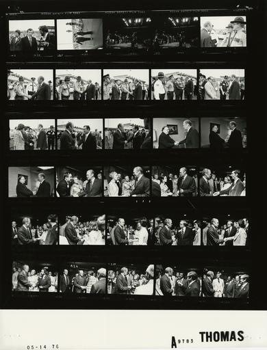 | Keywords: Ford A9783 NLGRF photo contact sheet (1976-05-14)(Gerald Ford Library).jpg White House Photographic Office WHPO is housed at the Gerald R Ford Presidential Library a branch of the National Archives and Records Administration NARA <br/><br/> This file is a 200 dpi photo contact sheet having images from roll of film A9783 of the August 9 1974 - January 20 1977 Gerald R Ford White House Photographic Office Series A0001-A9999 and B0001-B2886 photographs <br/><br/> The date on the photo contact sheet is the date the roll of film was processed not necessarily the date the photographs were taken See table below for additional details 1976-05-14 Gerald R Ford Presidential Library Image http //www fordlibrarymuseum gov/library/whphotos/A9783_NLGRF jpg A9783_NLGRF jpg from http //www fordlibrarymuseum gov/library/whphotos/19760514whpo pdf White House Photographs May 14 1976 of the http //www fordlibrarymuseum gov/Library/whphotos/whpo asp White House Photographic Collection page White House Photographic Office WHPO - Thomas PD-USGov Institution Institution Gerald R Ford Presidential Library Table wikitable sortable + Photo contact sheet A9783 U S President Ford Administration Gerald R Ford Library Frame s Tone Subject proper Subject generic Names Geographic Location Photographer Date - 3A BW Primary Campaign Trip to Tennessee; Airport Arrival US Senator from Tennessee TN Baker talking to press with camera on tarmac Sen Mrs Howard Baker Media Bristol TN Tri-City Airport Thomas 1976-05-14 - 4A BW Primary Campaign Trip to Tennessee; Airport Arrival standing talking; Cheney leaning on cane Cheney Don Penny Schneider Bristol TN Tri-City Airport Thomas 1976-05-14 - 5A-6A BW Primary Campaign Trip to Tennessee; Campaign Rally; Republican Country Chairman Williams ; US Senator and Representative from Tennessee TN standing onstage applauding; GRF turning to platform guests waving to audience GRF Sen Howard Baker Rep James Quillen Ed Williams III Johnson City TN Freedom Hall Convention Center Thomas 1976-05-14 - 7A-15A BW Primary Campaign Trip to Tennessee-Airport Departure for Memphis TN handshaking on tarmac GRF Police Officers Others Bristol TN Tri-City Airport Thomas 1976-05-14 - 16A-18A BW Primary Campaign Trip to Tennessee-Reception for Tennessee PFC Volunteers-prior to handshaking in room GRF Unidentified Man Memphis TN Holiday Inn Rivermont-Holding Room Thomas 1976-05-14 - 19A-32A BW Primary Campaign Trip to Tennessee-Reception for Tennessee Republican Leaders greeting handhaking standing talking mingling; all not in every frame GRF Unidentified Men and women Memphis TN Holiday Inn Rivermont-Dunster Room Thomas 1976-05-14 Gerald R Ford Presidential Library and Museum-cooperation PD-USGov Contact sheets by the Ford White House May 1976 |