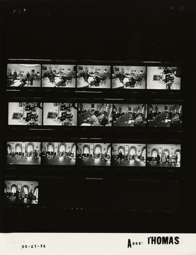 | Keywords: Ford A9987 NLGRF photo contact sheet (1976-05-27)(Gerald Ford Library).jpg White House Photographic Office WHPO is housed at the Gerald R Ford Presidential Library a branch of the National Archives and Records Administration NARA <br/><br/> This file is a 200 dpi photo contact sheet having images from roll of film A9987 of the August 9 1974 - January 20 1977 Gerald R Ford White House Photographic Office Series A0001-A9999 and B0001-B2886 photographs <br/><br/> The date on the photo contact sheet is the date the roll of film was processed not necessarily the date the photographs were taken See table below for additional details 1976-05-27 Gerald R Ford Presidential Library Image http //www fordlibrarymuseum gov/library/whphotos/A9987_NLGRF jpg A9987_NLGRF jpg from http //www fordlibrarymuseum gov/library/whphotos/19760527whpo pdf White House Photographs May 27 1976 of the http //www fordlibrarymuseum gov/Library/whphotos/whpo asp White House Photographic Collection page White House Photographic Office WHPO - Thomas PD-USGov Institution Institution Gerald R Ford Presidential Library Table wikitable sortable + Photo contact sheet A9987 U S President Ford Administration Gerald R Ford Library Frame s Tone Subject proper Subject generic Names Geographic Location Photographer Date - 4A-7A BW Meeting with President of Herman Brothers Incorporated a petroleum transport business and former Republican National Committeeman for Nebraska standing at desk; seated at desk talking GRF Richard L Dick Herman Cheney Oval Office Thomas 1976-05-27 - 8A-10A BW Farewell visit with Departing Ambassador of Liberia to the US seated in chairs by fireplace GRF Amb S Edward Peal Oval Office Thomas 1976-05-27 - 11A-19A BW Viewing PFC Primary Campaign Television Commericials; PFC DepChrm for Political Organization Spencer; Director's Circle film director Herriot seated at table watching television not always shown ; talking; GRF handshaking with Herriot at end GRF Don Penny Schneider Paul Herriot Stuart Spencer Cheney Raoul-Duval; Kennerly Nessen Cabinet Room Thomas 1976-05-27 Gerald R Ford Presidential Library and Museum-cooperation PD-USGov Contact sheets by the Ford White House May 1976 |