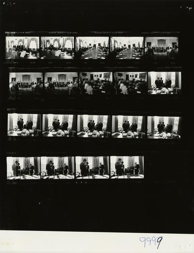 | Keywords: Ford A9999 NLGRF photo contact sheet (1976-05-28)(Gerald Ford Library).jpg White House Photographic Office WHPO is housed at the Gerald R Ford Presidential Library a branch of the National Archives and Records Administration NARA <br/><br/> This file is a 200 dpi photo contact sheet having images from roll of film A9999 of the August 9 1974 - January 20 1977 Gerald R Ford White House Photographic Office Series A0001-A9999 and B0001-B2886 photographs <br/><br/> The date on the photo contact sheet is the date the roll of film was processed not necessarily the date the photographs were taken See table below for additional details 1976-05-28 Gerald R Ford Presidential Library Image http //www fordlibrarymuseum gov/library/whphotos/A9999_NLGRF jpg A9999_NLGRF jpg from http //www fordlibrarymuseum gov/library/whphotos/19760528whpo pdf White House Photographs May 28 1976 of the http //www fordlibrarymuseum gov/Library/whphotos/whpo asp White House Photographic Collection page White House Photographic Office WHPO - Fitz-Patrick PD-USGov Institution Institution Gerald R Ford Presidential Library Table wikitable sortable + Photo contact sheet A9999 U S President Ford Administration Gerald R Ford Library Frame s Tone Subject proper Subject generic Names Geographic Location Photographer Date - 4-7 BW Meeting to Discuss Proposed Base Realignment Actions Affecting Richards-Gebaur Air Force Base Missouri with a Delegation of Local Officials from Kansas and Missouri seated around table; various angles and distances; all not in every frame GRF G Martinette C Wheeler R King T White S Christopher J Reardon R Davis F Shrontz Lt Gen J Hill Friedersdorf Kendall McConahey Ogilvie Wolthius Cabinet Room Fitz-Patrick 1976-05-28 - 8-10 BW Signing Ceremony for the Treaty on Underground Nuclear Explosions for Peaceful Purposes PNE Between the US and the USSR GRF seated at table speaking; others standing behind or seated in foreground; all not in frames; taken from back of room GRF Kissinger Dobrynin Vorontsov Kokorev Sisco Sonnenfeldt Hartman J Lowenstein G Vest J Goodby V Baker L Finch Ifft R Martin H Phelps A Rovine J Kelly R Seamans Gens Starbird Giller; Col R Duff Maj A Johnson; Others Cabinet Room Fitz-Patrick 1976-05-28 - 11-12 BW Meeting with Rhode Island RI Media Representatives seated around table; various angles and distances; all not in every frame GRF Peter Costa Charles Hauser David Russell Charles W Utter Truman Taylor Jack Williams Norman Jagolinzer Curt Worden Murray Feldman Roosevelt Room Fitz-Patrick 1976-05-28 - 13-15 BW Signing Ceremony for S 510 Medical Services Admendments of 1976 - Assistant Secretary for Health HEW; Commissioner of Food and Drugs Intern Assigned to Secretary Mathews GRF seated at desk talking turning toward others; others standing behind desk GRF Mathews Dr Theodore C Cooper Dr Alexander M Schmidt Sylvester Jones Oval Office Fitz-Patrick 1976-05-28 - 16-18 BW Signing Ceremony for S 510 Medical Services Admendments of 1976 - Assistant Secretary for Health HEW; Commissioner of Food and Drugs Intern Assigned to Secretary Mathews GRF seated at desk signiong Bill closing pen; others standing behind desk GRF Mathews Dr Theodore C Cooper Dr Alexander M Schmidt Sylvester Jones Oval Office Fitz-Patrick 1976-05-28 - 19-22 BW Signing Ceremony for S 510 Medical Services Admendments of 1976 - Assistant Secretary for Health HEW; Commissioner of Food and Drugs Intern Assigned to Secretary Mathews GRF seated at desk talking turning toward others; others standing behind desk GRF Mathews Dr Theodore C Cooper Dr Alexander M Schmidt Sylvester Jones Oval Office Fitz-Patrick 1976-05-28 Gerald R Ford Presidential Library and Museum-cooperation PD-USGov Contact sheets by the Ford White House May 1976 |