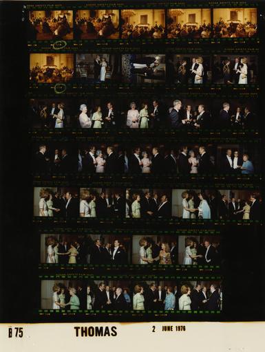 | Keywords: Ford B0075 NLGRF photo contact sheet (1976-06-02)(Gerald Ford Library).jpg White House Photographic Office WHPO is housed at the Gerald R Ford Presidential Library a branch of the National Archives and Records Administration NARA <br/><br/> This file is a 200 dpi photo contact sheet having images from roll of film B0075 of the August 9 1974 - January 20 1977 Gerald R Ford White House Photographic Office Series A0001-A9999 and B0001-B2886 photographs <br/><br/> The date on the photo contact sheet is the date the roll of film was processed not necessarily the date the photographs were taken See table below for additional details 1976-06-02 Gerald R Ford Presidential Library Image http //www fordlibrarymuseum gov/library/whphotos/B0075_NLGRF jpg B0075_NLGRF jpg from http //www fordlibrarymuseum gov/library/whphotos/19760602whpo pdf White House Photographs June 2 1976 of the http //www fordlibrarymuseum gov/Library/whphotos/whpo asp White House Photographic Collection page White House Photographic Office WHPO - Thomas PD-USGov Institution Institution Gerald R Ford Presidential Library Table wikitable sortable + Photo contact sheet B0075 U S President Ford Administration Gerald R Ford Library Frame s Tone Subject proper Subject generic Names Geographic Location Photographer Date - 5A-6A Color State Dinner Held in Honor of the King and Queen of Spain GRF standing offering toast; others seated; all not in frames; formal wear GRF Betty Ford King Juan Carlos I Queen Sofia Guests State Dining Room Thomas 1976-06-02 - 7A-10A Color State Dinner Held in Honor of the King and Queen of Spain Juan Carlos and Interpreter standing offering toast; others seated; various angles and distances; all not in frames; formal wear GRF Betty Ford King Juan Carlos I Queen Sofia Interpreter Guests State Dining Room Thomas 1976-06-02 - 11A Color Coffee Following State Dinner Held in Honor of the King and Queen of Spain standing talking; Queen holding cup and saucer; formal wear GRF Queen Sofia Blue Room Thomas 1976-06-02 - 12A-15A Color Coffee Following State Dinner Held in Honor of the King and Queen of Spain standing talking; Queen holding cup and saucer; various agles and distances; formal wear GRF Queen Sofia Military Aide Blue Room Thomas 1976-06-02 - 16A-17A Color Coffee Following State Dinner Held in Honor of the King and Queen of Spain standing talking; holding cups and saucers; woman laughing hysterically; formal wear Betty Ford King Juan Carlos I Unidentified Woman Blue Room Thomas 1976-06-02 - 18A-20A Color Coffee Following State Dinner Held in Honor of the King and Queen of Spain standing talking; holding cups and saucers; formal wear GRF King Juan Carlos I Unidentified Man Blue Room Thomas 1976-06-02 - 21A-23A Color Coffee Following State Dinner Held in Honor of the King and Queen of Spain standing talking; holding cups and saucers; formal wear GRF Catto Unidentified Woman Blue Room Thomas 1976-06-02 - 24A Color Coffee Following State Dinner Held in Honor of the King and Queen of Spain standing posing; holding cups and saucers; formal wear GRF Unidentified Man Woman Blue Room Thomas 1976-06-02 - 25A-37 Color Receiving Line During State Dinner Held in Honor of the King and Queen of Spain greeting handshaking standing talking; all not in every frame; formal wear GRF Betty Ford King Juan Carlos I Queen Sofia Guests East Room Thomas 1976-06-02 Gerald R Ford Presidential Library and Museum-cooperation PD-USGov Contact sheets by the Ford White House June 1976 |