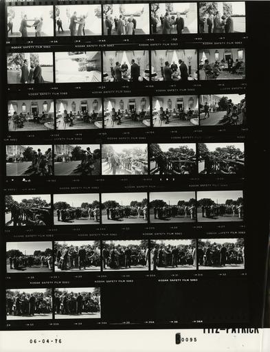 | Keywords: Ford B0095 NLGRF photo contact sheet (1976-06-04)(Gerald Ford Library).jpg White House Photographic Office WHPO is housed at the Gerald R Ford Presidential Library a branch of the National Archives and Records Administration NARA <br/><br/> This file is a 200 dpi photo contact sheet having images from roll of film B0095 of the August 9 1974 - January 20 1977 Gerald R Ford White House Photographic Office Series A0001-A9999 and B0001-B2886 photographs <br/><br/> The date on the photo contact sheet is the date the roll of film was processed not necessarily the date the photographs were taken See table below for additional details 1976-06-04 Gerald R Ford Presidential Library Image http //www fordlibrarymuseum gov/library/whphotos/B0095_NLGRF jpg B0095_NLGRF jpg from http //www fordlibrarymuseum gov/library/whphotos/19760604whpo pdf White House Photographs June 4 1976 of the http //www fordlibrarymuseum gov/Library/whphotos/whpo asp White House Photographic Collection page White House Photographic Office WHPO - Fitz-Patrick PD-USGov Institution Institution Gerald R Ford Presidential Library Table wikitable sortable + Photo contact sheet B0095 U S President Ford Administration Gerald R Ford Library Frame s Tone Subject proper Subject generic Names Geographic Location Photographer Date - 3-4 BW Arrival for Farewell Visit by the King and Queen of Spain greeting handshaking embracing laughing GRF Betty Ford King Juan Carlos I Queen Sofia North Portico Fitz-Patrick 1976-06-04 - 5-8 BW Arrival for Farewell Visit by the King and Queen of Spain GRF BF Juan Carlos and Sofia standing talking smiling; others in background; all not in every frame GRF Betty Ford King Juan Carlos I Queen Sofia; Catto Others North Portico Fitz-Patrick 1976-06-04 - 9 BW Arrival for Farewell Visit by the King and Queen of Spain GRF BF Kissinger Juan Carlos and Sofia standing talking smiling; others in background; long shot GRF Betty Ford King Juan Carlos I Queen Sofia Kissinger; Others North Portico Fitz-Patrick 1976-06-04 - 10-11 BW Reception Prior to Farewell by the King and Queen of Spain standing talking; BF and Sofia partially obscured GRF Betty Ford King Juan Carlos I Queen Sofia Kissinger Second Floor - Yellow Oval Room Fitz-Patrick 1976-06-04 - 12-16 BW Reception Prior to Farewell by the King and Queen of Spain seated in semi-circle near fireplace; talking; long shot from across room GRF Betty Ford King Juan Carlos I Queen Sofia Kissinger Second Floor - Yellow Oval Room Fitz-Patrick 1976-06-04 - 17-19 B Following the Departure of the King and Queen of Spain GRF and man standing under canopy talking; agents standing on driveway; crowd on lawn on right of frame; long shots GRF Unidentified Man; Secret Service Crowd South Driveway; South Portico Fitz-Patrick 1976-06-04 - 20-23 B Impromptu Press Conference Following the Departure of the King and Queen of Spain standing talking; GRF on driveway media on right of frame behind rope GRF Media South Driveway Fitz-Patrick 1976-06-04 - 24-34 B Impromptu Press Conference Following the Departure of the King and Queen of Spain standing talking; GRF on driveway back to camera; Washington Monument in background; various distances GRF Media South Driveway Fitz-Patrick 1976-06-04 Gerald R Ford Presidential Library and Museum-cooperation PD-USGov Contact sheets by the Ford White House June 1976 |