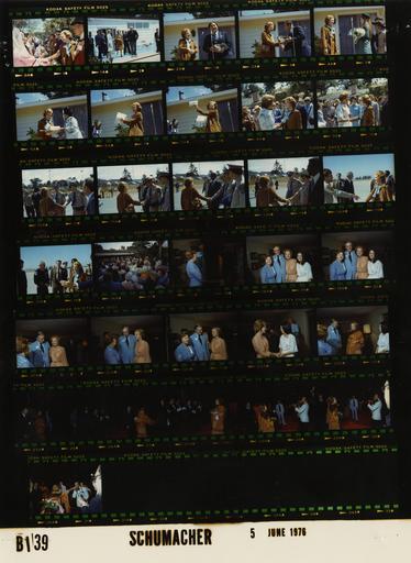 | Keywords: Ford B0139 NLGRF photo contact sheet (1976-06-05)(Gerald Ford Library).jpg White House Photographic Office WHPO is housed at the Gerald R Ford Presidential Library a branch of the National Archives and Records Administration NARA <br/><br/> This file is a 200 dpi photo contact sheet having images from roll of film B0139 of the August 9 1974 - January 20 1977 Gerald R Ford White House Photographic Office Series A0001-A9999 and B0001-B2886 photographs <br/><br/> The date on the photo contact sheet is the date the roll of film was processed not necessarily the date the photographs were taken See table below for additional details 1976-06-05 Gerald R Ford Presidential Library Image http //www fordlibrarymuseum gov/library/whphotos/B0139_NLGRF jpg B0139_NLGRF jpg from http //www fordlibrarymuseum gov/library/whphotos/19760605whpo pdf White House Photographs June 5 1976 of the http //www fordlibrarymuseum gov/Library/whphotos/whpo asp White House Photographic Collection page White House Photographic Office WHPO - Schumacher PD-USGov Institution Institution Gerald R Ford Presidential Library Table wikitable sortable + Photo contact sheet B0139 U S President Ford Administration Gerald R Ford Library Frame s Tone Subject proper Subject generic Names Geographic Location Photographer Date - 1 Color First Lady's Trip to California - Campaign Stop in Monterey California greeting handshaking; all not in frame Betty Ford Crowd Monterey CA Alan Pattee Ranch Schumacher 1976-06-05 - 2 Color First Lady's Trip to California - Campaign Stop in Monterey California standing on porch of unidentified building; No Spiked Shoes sign on step; woman on lounge chair in background Betty Ford Others Monterey CA Alan Pattee Ranch Schumacher 1976-06-05 - 3-4 Color First Lady's Trip to California - Campaign Stop in Monterey California standing on porch of unidentified building; standing at microphone; man presenting BF with gift Betty Ford Unidentified Man Monterey CA Alan Pattee Ranch Schumacher 1976-06-05 - 5 Color First Lady's Trip to California - Campaign Stop in Monterey California standing on porch of unidentified building; presenting BF with gift Betty Ford Girl Scouts Monterey CA Alan Pattee Ranch Schumacher 1976-06-05 - 6 Color First Lady's Trip to California - Campaign Stop in Monterey California standing on porch of unidentified building; woman presenting BF with gift Betty Ford Unidentified Woman Monterey CA Alan Pattee Ranch Schumacher 1976-06-05 - 7-8 Color First Lady's Trip to California - Campaign Stop in Monterey California standing on porch of unidentified building; holding up gift Betty Ford Monterey CA Alan Pattee Ranch Schumacher 1976-06-05 - 9-10 Color First Lady's Trip to California - Campaign Stop in Monterey California BF and woman handshaking; others standing in background; houses in background Betty Ford Unidentified Woman Other Women Republican Women's Club Monterey CA Alan Pattee Ranch Schumacher 1976-06-05 - 11-16 Color First Lady's Trip to California - Campaign Stop in Monterey California; Prior to Departure for handshaking saying goodbye; all not in every frame Betty Ford Police Officers Others Monterey CA Monterey Peninsula Airport Schumacher 1976-06-05 - 17 Color First Lady's Trip to California; Campaign Stop in Costa Mesa; 31st Annual Lion's Fishfry location may be innacurate - Costa Mesa California BF standing in front of building; crowd in foreground Betty Ford Crowd Costa Mesa CA Lions Park Schumacher 1976-06-05 - 18 Color First Lady's Trip to California; Campaign Stop in Costa Mesa; Arrival for Private Reception location may be innacurate - Fullerton California greeting handshaking standing talking; black line across frame Betty Ford Unidentified Man Woman Mr Mrs Robert Beaver Fullerton CA Robert Beaver Residence Schumacher 1976-06-05 - 19-20 Color First Lady's Trip to California; Campaign Stop in Costa Mesa; Arrival for Private Reception location may be innacurate - Fullerton California standing posing; women wearing ribbons that read Hostess Betty Ford Unidentified Man Woman Mr Mrs Robert Beaver Unidentied Woman Fullerton CA Robert Beaver Residence Schumacher 1976-06-05 - 21-23 Color First Lady's Trip to California; Campaign Stop in Costa Mesa; Arrival for Private Reception location may be innacurate - Fullerton California standing talking Betty Ford Unidentified Man Woman Mr Mrs Robert Beaver Fullerton CA Robert Beaver Residence Schumacher 1976-06-05 - 24 Color First Lady's Trip to California; Campaign Stop in Costa Mesa; Arrival for Private Reception location may be innacurate - Fullerton California standing talking Betty Ford Unidentified Woman Fullerton CA Robert Beaver Residence Schumacher 1976-06-05 - 25 Color First Lady's Trip to California; Campaign Stop in Costa Mesa; Arrival for Private Reception location may be innacurate - Fullerton California standing talking; BF wearing orange colored wrap Betty Ford Unidentified Man Woman Mr Mrs Robert Beaver Fullerton CA Robert Beaver Residence Schumacher 1976-06-05 - 26-31 Color First Lady's Trip to California; Campaign Stop in Costa Mesa; Arrival for Private Reception location may be innacurate - Fullerton California standing talking; various angles and distances; all not in every frame; night shots Betty Ford Musicians Wait staff Others Fullerton CA Robert Beaver Residence - Outside Schumacher 1976-06-05 Gerald R Ford Presidential Library and Museum-cooperation PD-USGov Contact sheets by the Ford White House June 1976 Monterey California Costa Mesa California Fullerton California |