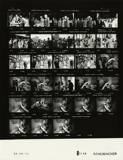 | Keywords: Ford B0142 NLGRF photo contact sheet (1976-06-06)(Gerald Ford Library).jpg White House Photographic Office WHPO is housed at the Gerald R Ford Presidential Library a branch of the National Archives and Records Administration NARA <br/><br/> This file is a 200 dpi photo contact sheet having images from roll of film B0142 of the August 9 1974 - January 20 1977 Gerald R Ford White House Photographic Office Series A0001-A9999 and B0001-B2886 photographs <br/><br/> The date on the photo contact sheet is the date the roll of film was processed not necessarily the date the photographs were taken See table below for additional details 1976-06-06 Gerald R Ford Presidential Library Image http //www fordlibrarymuseum gov/library/whphotos/B0142_NLGRF jpg B0142_NLGRF jpg from http //www fordlibrarymuseum gov/library/whphotos/19760606whpo pdf White House Photographs June 6 1976 of the http //www fordlibrarymuseum gov/Library/whphotos/whpo asp White House Photographic Collection page White House Photographic Office WHPO - Schumacher PD-USGov Institution Institution Gerald R Ford Presidential Library Table wikitable sortable + Photo contact sheet B0142 U S President Ford Administration Gerald R Ford Library Frame s Tone Subject proper Subject generic Names Geographic Location Photographer Date - 8A BW First Lady's Trip to California - Dedication Ceremonies for Cedars-Sinai Medical Center BF bending greeting woman; woman seated in wheelchair; others in background Betty Ford Unidentified Woman Others Los Angeles CA Cedars-Sinai Medical Center -Outside Schumacher 1976-06-06 - 9A BW First Lady's Trip to California - Dedication Ceremonies for Cedars-Sinai Medical Center; Vice Chairman of the Board of Directors and Master of Ceremonies standing posing; woman seated in wheelchair Betty Ford Unidentified Woman Bernard Weinberg Others Los Angeles CA Cedars-Sinai Medical Center -Outside Schumacher 1976-06-06 - 10A-11A BW First Lady's Trip to California - Dedication Ceremonies for Cedars-Sinai Medical Center; Vice Chairman of the Board of Directors and Master of Ceremonies standing posing; all not in every frame Betty Ford Bernard Weinberg Others Los Angeles CA Cedars-Sinai Medical Center -Outside Schumacher 1976-06-06 - 12A BW First Lady's Trip to California - Dedication Ceremonies for Cedars-Sinai Medical Center; Vice Chairman of the Board of Directors and Master of Ceremonies walking handshaking Betty Ford Bernard Weinberg Others Los Angeles CA Cedars-Sinai Medical Center -Outside Schumacher 1976-06-06 - 13A-15A BW First Lady's Trip to California - Dedication Ceremonies for Cedars-Sinai Medical Center; Vice Chairman of the Board of Directors and Master of Ceremonies walking talking; BF waving in frames 14A 15A; touring grounds; all not in every frame Betty Ford Bernard Weinberg Others Los Angeles CA Cedars-Sinai Medical Center -Outside Schumacher 1976-06-06 - 16A-17A BW First Lady's Trip to California - Arrival at the Beverly Wilshire Hotel greeting handshaking standing talking Betty Ford Unidentified Man woman Beverly Hills CA Beverly Wilshire Hotel - Outside Schumacher 1976-06-06 - 18A BW First Lady's Trip to California - Gift Presentation Following Arrival at the Beverly Wilshire Hotel standing posing with framed Heritage plaque Betty Ford Unidentified Man woman Beverly Hills CA Beverly Wilshire Hotel - Outside Schumacher 1976-06-06 - 19A-20A BW First Lady's Trip to California - Gift Presentation Following Arrival at the Beverly Wilshire Hotel standing posing with framed Heritage plaque Betty Ford Unidentified Man woman 3 boys Beverly Hills CA Beverly Wilshire Hotel - Outside Schumacher 1976-06-06 - 21A BW First Lady's Trip to California - Gift Presentation Following Arrival at the Beverly Wilshire Hotel standing talking saying goodbye; BF holding framed Heritage plaque Betty Ford Unidentified Man Woman Two boys Beverly Hills CA Beverly Wilshire Hotel - Outside Schumacher 1976-06-06 - 22A-24A BW First Lady's Trip to California - Free Evening at the Beverly Wilshire Hotel talking; BF seated others standing; wrought iron stair railing in background Betty Ford Weidenfeld Unidentified Photographer Beverly Hills CA Beverly Wilshire Hotel - First Lady's Suite Schumacher 1976-06-06 - 25A BW First Lady's Trip to California - Free Evening at the Beverly Wilshire Hotel standing talking; photographer in sillihouette Betty Ford Unidentified Photographer Beverly Hills CA Beverly Wilshire Hotel - First Lady's Suite Schumacher 1976-06-06 - 26A-35A BW First Lady's Trip to California - Free Evening at the Beverly Wilshire Hotel seated talking on sofa; wrought iron stair railing in background; various angles and distances Betty Ford Weidenfeld Beverly Hills CA Beverly Wilshire Hotel - First Lady's Suite Schumacher 1976-06-06 Gerald R Ford Presidential Library and Museum-cooperation PD-USGov Contact sheets by the Ford White House June 1976 |