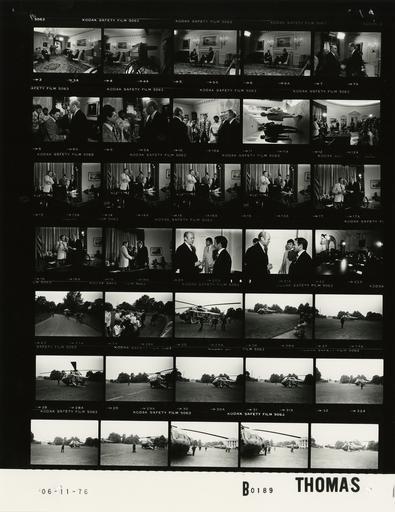 Keywords: Ford B0189 NLGRF photo contact sheet (1976-06-11)(Gerald Ford Library).jpg White House Photographic Office WHPO is housed at the Gerald R Ford Presidential Library a branch of the National Archives and Records Administration NARA <br/><br/> This file is a 200 dpi photo contact sheet having images from roll of film B0189 of the August 9 1974 - January 20 1977 Gerald R Ford White House Photographic Office Series A0001-A9999 and B0001-B2886 photographs <br/><br/> The date on the photo contact sheet is the date the roll of film was processed not necessarily the date the photographs were taken See table below for additional details 1976-06-11 Gerald R Ford Presidential Library Image http //www fordlibrarymuseum gov/library/whphotos/B0189_NLGRF jpg B0189_NLGRF jpg from http //www fordlibrarymuseum gov/library/whphotos/19760611whpo pdf White House Photographs June 11 1976 of the http //www fordlibrarymuseum gov/Library/whphotos/whpo asp White House Photographic Collection page White House Photographic Office WHPO - Thomas PD-USGov Institution Institution Gerald R Ford Presidential Library Table wikitable sortable + Photo contact sheet B0189 U S President Ford Administration Gerald R Ford Library Frame s Tone Subject proper Subject generic Names Geographic Location Photographer Date - 3A B Interview with Representatives of The National Education Association seated talking; GRF and and Unidentified Man seated near fireplace; others seated on left of frame GRF John Ryor Judy Owens Keith Geiger John McGarigal Willard McGuire Ground Floor -Map Room Thomas 1976-06-11 - 4A-6A B Interview with Representatives of The National Education Association seated near fireplace talking; TV camera in foreground in frame 4 GRF Unidentified Man John Ryor Keith Geiger John McGarigal Willard McGuire Ground Floor -Map Room Thomas 1976-06-11 - 7A B Following Interview with Representatives of The National Education Association standing talking handshaking GRF Unidentified Man John Ryor Keith Geiger John McGarigal Willard McGuire Ground Floor -Map Room Thomas 1976-06-11 - 8A-10A B Following Interview with Representatives of The National Education Association standing talking handshaking; all not in every frame GRF John Ryor Judy Owens Keith Geiger John McGarigal Willard McGuire Ground Floor -Map Room Thomas 1976-06-11 - 11A B Following Interview with Representatives of The National Education Association GRF and Nessen in foreground talking; moving toward camera GRF Nessen Secret Service Colonnade Thomas 1976-06-11 - 12A-16A B Request to Congress for Supplemental Appropriations tfor Victims of Flood Damage Caused by Collapse of Teton Dam In Idaho ID - Secretary of the Interior; Secretary of Agriculture GRF seated behind desk; reading signing statement; others standing behind GRF GRF Kleppe Knebel Two Unidentified Men Oval Office Thomas 1976-06-11 - 17A-19A B Request to Congress for Supplemental Appropriations tfor Victims of Flood Damage Caused by Collapse of Teton Dam In Idaho ID - Secretary of the Interior; Secretary of Agriculture standing talking; looking at document GRF Kleppe Knebel Two Unidentified Men Oval Office Thomas 1976-06-11 - 20A-21A B standing talking GRF Unidentified Man Scheduling and Advance Office Thomas 1976-06-11 - 22A B Taping Messages for Vocational Industrial Clubs of America VICA and US Skill Olympic; National Association of Student Councils and National Association of Student Activity Advisors; Japanese American Citizens; Slovak-American Community GRF seated at table on right of frame; speaking; Cameraman across table from GRF GRF Television Cameraman Cabinet Room Thomas 1976-06-11 - 23A B Prior to Departure for Campaign Trip to Missouri walking across driveway toward helicopter not seen ; guard shack in background GRF O'Donnell Raoul-Duval; Others South Driveway Thomas 1976-06-11 - 24A B Prior to Departure for Campaign Trip to Missouri GRF standing talking greeting; some students taking photos GRF Unidentified Group of Adults Students South Lawn Thomas 1976-06-11 - 25A B Prior to Departure for Campaign Trip to Missouri - US Senators from Texas TX Kansas KS Tennessee TN GRF and Tower greeting handshaking; Dole Baker others Marine One copter in background GRF Sens Tower Dole Baker; Others South Lawn Thomas 1976-06-11 - 26A B Prior to Departure for Campaign Trip to Missouri kneeling on driveway; shooting photos of Marine One copter preparing to leave Media South Lawn Thomas 1976-06-11 - 27A-29A B Prior to Departure for Campaign Trip to Missouri moving around Marine One; door still open on copter White House staff South Lawn Thomas 1976-06-11 - 30A-33A B Prior to Departure for Campaign Trip to Missouri moving around Marine One; 2nd helicopter approaching landing White House staff South Lawn Thomas 1976-06-11 - 34A B Prior to Departure for Campaign Trip to Missouri - Possible Problem with Helicopter walking talking; moving from near helicopter to 2nd helicopter in background Marine One GRF O'Donnell South Lawn Thomas 1976-06-11 - 35A-36A B Prior to Departure for Campaign Trip to Missouri - Possible Problem with Helicopter; US Senators from Texas TX Kansas KS Tennessee TN walking toward Marine One; 2nd helicopter and White House in background GRF Tower Dole Baker; Others South Lawn Thomas 1976-06-11 - 37 B Departure for Campaign Trip to Missouri - Possible Problem with Helicopter Marine One ascending in background; 2nd helicopter in foreground South Lawn Thomas 1976-06-11 Gerald R Ford Presidential Library and Museum-cooperation PD-USGov Contact sheets by the Ford White House June 1976 |