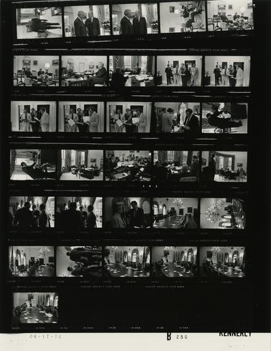 | Keywords: Ford B0250 NLGRF photo contact sheet (1976-06-17)(Gerald Ford Library).jpg White House Photographic Office WHPO is housed at the Gerald R Ford Presidential Library a branch of the National Archives and Records Administration NARA <br/><br/> This file is a 200 dpi photo contact sheet having images from roll of film B0250 of the August 9 1974 - January 20 1977 Gerald R Ford White House Photographic Office Series A0001-A9999 and B0001-B2886 photographs <br/><br/> The date on the photo contact sheet is the date the roll of film was processed not necessarily the date the photographs were taken See table below for additional details 1976-06-17 Gerald R Ford Presidential Library Image http //www fordlibrarymuseum gov/library/whphotos/B0250_NLGRF jpg B0250_NLGRF jpg from http //www fordlibrarymuseum gov/library/whphotos/19760617whpo pdf White House Photographs June 17 1976 of the http //www fordlibrarymuseum gov/Library/whphotos/whpo asp White House Photographic Collection page White House Photographic Office WHPO <br/> Creator David Hume Kennerly PD-USGov Institution Institution Gerald R Ford Presidential Library Table wikitable sortable + Photo contact sheet B0250 U S President Ford Administration Gerald R Ford Library Frame s Tone Subject proper Subject generic Names Geographic Location Photographer Date - 3A B Meeting with Member of the President's Foreign Intelligence Advisory Board PFIAB greeting walking toward each other; Connally's back to camera GRF John Connally Oval Office Kennerly 1976-06-17 - 4A-5A B Meeting with Member of the President's Foreign Intelligence Advisory Board PFIAB standing talking GRF John Connally Oval Office Kennerly 1976-06-17 - 6A-8A B Meeting with Member of the President's Foreign Intelligence Advisory Board PFIAB seated talking on sofas near fireplace GRF John Connally Oval Office Kennerly 1976-06-17 - 9A-10A B Meeting with the Counsel;lor to the Vice President seated around desk talking; various angles GRF Raymond Shafer Oval Office Kennerly 1976-06-17 - 11A-15A B Prior to Meeting with President Ford Committee Leadership standing each reqding documents; O'Donnell standing on left in frames 11A and 12A Nessen Scowcroft Raoul-Duval Unidentified Man; O'Donnell Scheduling and Advance Office Kennerly 1976-06-17 - 16A B Prior to Meeting with President Ford Committee Leadership standing Morton on left of frame; Scowcroft in background on telephone; Baker and Man looking at Scowcroft backs to camera; Cheny on right reading document Morton James Baker Unidentified Man Scowcroft Cheney Scheduling and Advance Office Kennerly 1976-06-17 - 17A-18A B Prior to Meeting with President Ford Committee Leadership GRF seated at desk; Cheney standing on right of frame arranging papers on desk GRF Cheney Oval Office Kennerly 1976-06-17 - 19A B Private Moment Prior to Meeting with President Ford Committee Leadership seated at desk reading document; long shot GRF Oval Office Kennerly 1976-06-17 - 20A B Meeting with President Ford Committee Leadership seated around desk; Scowcroft's back to camera; Cheney crushing cigarette GRF Nessen Stuart Spencer Morton Cheney Scowcroft Oval Office Kennerly 1976-06-17 - 21A B Meeting with President Ford Committee Leadership seated around desk; Spencer standing; only GRF facing camera GRF Stuart Spencer Morton Cheney Scowcroft Oval Office Kennerly 1976-06-17 - 22A B Meeting with President Ford Committee Leadership seated around table; Cheney talking gesturing; only GRF facing camera; long shot from Colonnade door GRF Nessen Stuart Spencer Morton Cheney Scowcroft Oval Office Kennerly 1976-06-17 - 23A-24A B Beirut Lebanon Crisis - Meeting of the National Security Council standing talking; Brown's back to camera Kissinger Scowcroft George Brown Cabinet Room Kennerly 1976-06-17 - 25A B Beirut Lebanon Crisis - Meeting of the National Security Council standing talking L Dean Brown Bush Cabinet Room Kennerly 1976-06-17 - 26A-28A B Beirut Lebanon Crisis - Meeting of the National Security Council standing talking in tight circle; Clements' and Bush's backs to camera; long shots from opposite end of table George Brown L Dean Brown Kissinger Bush Clements Cheney Cabinet Room Kennerly 1976-06-17 - 29A B Beirut Lebanon Crisis - Meeting of the National Security Council standing talking; Brown's back to camera Bush Kissinger George Brown Cabinet Room Kennerly 1976-06-17 - 30A-33A B Beirut Lebanon Crisis - Meeting of the National Security Council seated around table; maps on easel near fireplace; various angles and distances; Steward standing behind GRF in 32A GRF George Brown L Dean Brown Kissinger Bush Scowcroft Clements Cheney; White House Steward Cabinet Room Kennerly 1976-06-17 Gerald R Ford Presidential Library and Museum-cooperation PD-USGov Contact sheets by the Ford White House June 1976 Photographs by David Hume Kennerly from 1976 |