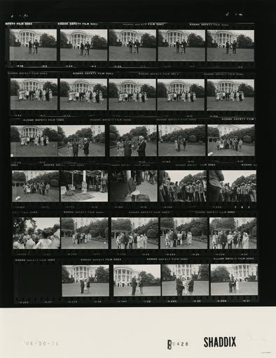 Keywords: Ford B0428 NLGRF photo contact sheet (1976-06-30)(Gerald Ford Library).jpg White House Photographic Office WHPO is housed at the Gerald R Ford Presidential Library a branch of the National Archives and Records Administration NARA <br/><br/> This file is a 200 dpi photo contact sheet having images from roll of film B0428 of the August 9 1974 - January 20 1977 Gerald R Ford White House Photographic Office Series A0001-A9999 and B0001-B2886 photographs <br/><br/> The date on the photo contact sheet is the date the roll of film was processed not necessarily the date the photographs were taken See table below for additional details 1976-06-30 Gerald R Ford Presidential Library Image http //www fordlibrarymuseum gov/library/whphotos/B0428_NLGRF jpg B0428_NLGRF jpg from http //www fordlibrarymuseum gov/library/whphotos/19760630whpo pdf White House Photographs June 30 1976 of the http //www fordlibrarymuseum gov/Library/whphotos/whpo asp White House Photographic Collection page White House Photographic Office WHPO - Shaddix PD-USGov Institution Institution Gerald R Ford Presidential Library Table wikitable sortable + Photo contact sheet B0428 U S President Ford Administration Gerald R Ford Library Frame s Tone Subject proper Subject generic Names Geographic Location Photographer Date - 2-6 BW Bicentennial Gift Presentation standing posing by metal sculpture of a bird eagle ; White House and Truman Balcony in background Mitler Unidentified Man South Lawn Shaddix 1976-06-30 - 7-12 BW Bicentennial Gift Presentation standing posing by metal sculpture of a bird eagle ; White House and Truman Balcony in background Mitler Unidentified Group of Men Women South Lawn Shaddix 1976-06-30 - 13-15 BW Bicentennial Gift Presentation standing posing; Mitler holding wooden plaque with bell and words God Bless Our Country on it; White House in background Mitler Unidentified Air Force Officer Woman East Garden Jacqueline Kennedy Garden Shaddix 1976-06-30 - 16-17 BW Bicentennial Gift Presentation standing posing; Mitler holding wooden plaque with bell and words God Bless Our Country on it; White House in background Mitler Unidentified Air Force Officer Unidentified Group of Men Women East Garden Jacqueline Kennedy Garden Shaddix 1976-06-30 - 18-19 BW Bicentennial Gift Presentation wooden plaque with bell and words God Bless Our Country on it sitting on patio chair; two angles and distances East Garden Jacqueline Kennedy Garden Shaddix 1976-06-30 - 20-22 BW Bicentennial Gift Presentation Mitler and Man standing in center of group; man wearing a cape; youths were T-Shirts with Bicentennial emblem on sleeve; various angles and distances; all not in frames Mitler Unidentified Youths Unidentified Man East Garden Jacqueline Kennedy Garden Shaddix 1976-06-30 - 23-26 BW Bicentennial Gift Presentation standing posing; Mitler and 1 man holding small bell; various distances; White House in backgroumd Mitler Unidentified Group of Men Women East Garden Jacqueline Kennedy Garden Shaddix 1976-06-30 - 27 BW Shaddix 1976-06-30 - 28-31 BW Bicentennial Gift Presentation standing posing holding small copy of Liberty Bell; White House and Truman Balcony in background; various distances Mitler Unidentified Man Woman South Lawn Shaddix 1976-06-30 Gerald R Ford Presidential Library and Museum-cooperation PD-USGov Contact sheets by the Ford White House June 1976 |