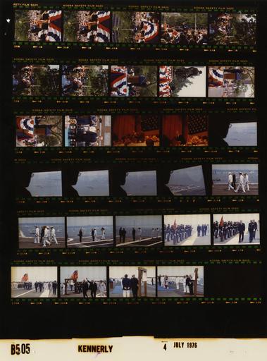 Keywords: Ford B0505 NLGRF photo contact sheet (1976-07-04)(Gerald Ford Library).jpg White House Photographic Office WHPO is housed at the Gerald R Ford Presidential Library a branch of the National Archives and Records Administration NARA <br/><br/> This file is a 200 dpi photo contact sheet having images from roll of film B0505 of the August 9 1974 - January 20 1977 Gerald R Ford White House Photographic Office Series A0001-A9999 and B0001-B2886 photographs <br/><br/> The date on the photo contact sheet is the date the roll of film was processed not necessarily the date the photographs were taken See table below for additional details 1976-07-04 Gerald R Ford Presidential Library Image http //www fordlibrarymuseum gov/library/whphotos/B0505_NLGRF jpg B0505_NLGRF jpg from http //www fordlibrarymuseum gov/library/whphotos/19760704whpo pdf White House Photographs July 4 1976 of the http //www fordlibrarymuseum gov/Library/whphotos/whpo asp White House Photographic Collection page White House Photographic Office WHPO <br/> Creator David Hume Kennerly PD-USGov Institution Institution Gerald R Ford Presidential Library Table wikitable sortable + Photo contact sheet B0505 U S President Ford Administration Gerald R Ford Library Frame s Tone Subject proper Subject generic Names Geographic Location Photographer Date - 3-13 Color 4th of July Bicentennial Event - Speech at Special Bicentennial Event in Front of Independence Hall Hosted by the City of Philadelphia GRF speaking at lectern; crowd and platform guests seated; Washington Statue in 9th frame; various angles and distances; all not in every frame GRF Platform guests L Sulivan J Krol F Rizzo M Shapp S Ford E Musleach Iakavos A Gaudiosi J Lindinger J Dramesi JW Marriott M Anderson C Heston D James L Hallgren G Schwartz L Kane Crowd Philadelphia PA Independence Square - Outside Independence Hall Kennerly 1976-07-04 - 14 Color 4th of July Bicentennial Event - Conclusion of Speech at Special Bicentennial Event in Front of Independence Hall Hosted by the City of Philadelphia standing; Dramesi applauding GRF Dramesi Philadelphia PA Independence Square - Outside Independence Hall Kennerly 1976-07-04 - 15-16 Color 4th of July Bicentennial Event - Independence Day Luncheon for Platform Guests Hosted by Mayor Rizzo GRF standing at lectern speaking; taken from left of lectern; all not in frame GRF Platform guests L Sulivan J Krol F Rizzo M Shapp S Ford E Musleach Iakavos A Gaudiosi J Lindinger J Dramesi JW Marriott M Anderson C Heston D James L Hallgren G Schwartz L Kane W McKowan Spouses Children Philadelphia PA Crystal Room - Bellevue-Stratford Hotel Kennerly 1976-07-04 - 17-21 Color 4th of July Bicentennial Event - Flight from Philadelphia to Flight Deck of USS Forrestal CV59 -Operation Sail seated; looking out window; tall ships Naval vessels Statue of Liberty in background; all not in every frame GRF New York City NY Marine One Kennerly 1976-07-04 - 22-23 Color 4th of July Bicentennial Event - Arrival on Deck of USS Forrestal CV-59 - Operation Sail; Commander US Navy North Atlantic Fleet; Captain USS Forrestal walking across flight deck GRF Adm Isaac Kidd Capt Joseph Barth Unidentified Officer New York City NY Flight Deck - USS Forrestal CV-59 Kennerly 1976-07-04 - 24-25 Color 4th of July Bicentennial Event - Arrival on Deck of USS Forrestal CV-59 - Operation Sail; Captain USS Forrestal; Secretary of the Navy standing saluting GRF Capt Joseph Barth; Sec J William Middendorf; Other Officers New York City NY Flight Deck - USS Forrestal CV-59 Kennerly 1976-07-04 - 26-27 Color 4th of July Bicentennial Event - Arrival on Deck of USS Forrestal CV-59 - Operation Sail; Captain USS Forrestal; Secretary of the Navy GRF inspecting Honor Guard GRF Capt Joseph Barth Marine Honor Guard; Sec J William Middendorf New York City NY Flight Deck - USS Forrestal CV-59 Kennerly 1976-07-04 - 28-29 Color 4th of July Bicentennial Event - Arrival on Deck of USS Forrestal CV-59 - Operation Sail; Captain USS Forrestal; Secretary of the Navy; Administrator American Revolution Bicentennial Administration walking across deck; GRF waving in 2nd frame; Bicentennial Bell in 2nd frame GRF Capt Joseph Barth Marine Honor Guard; Sec J William Middendorf John Warner; Others New York City NY Flight Deck - USS Forrestal CV-59 Kennerly 1976-07-04 - 30 Color 4th of July Bicentennial Event - Ringing of the Bicentennial Bell on the Flight Deck of the USS Forrestal CV-59 ; Administrator American Revolution Bicentennial Administration ARBA ; Commander US Navy North Atlantic Fleet; Captain USS Forrestal GRF and Warner standing next to Bicentennial Bell backs to camera; others standing to side GRF John Warner Adm Mrs Isaac Kidd Capt Mrs Joseph Barth Sec Mrs J William Middendorf Mr Mrs Emil Mosbacher Susan Ford New York Harbor New York City NY Flight Deck USS Forrestal CV59 Kennerly 1976-07-04 - 31 Color 4th of July Bicentennial Event - Ringing of the Bicentennial Bell on the Flight Deck of the USS Forrestal CV-59 ; Administrator American Revolution Bicentennial Administration ARBA ; Commander US Navy North Atlantic Fleet; Captain USS Forrestal GRF and Warner standing next to Bicentennial Bell backs to camera; GRF ringing bell; others standing to side GRF John Warner Adm Mrs Isaac Kidd Capt Mrs Joseph Barth Sec Mrs J William Middendorf Mr Mrs Emil Mosbacher Susan Ford New York Harbor New York City NY Flight Deck USS Forrestal CV59 Kennerly 1976-07-04 Gerald R Ford Presidential Library and Museum-cooperation PD-USGov Contact sheets by the Ford White House July 1976 Photographs by David Hume Kennerly from 1976 |