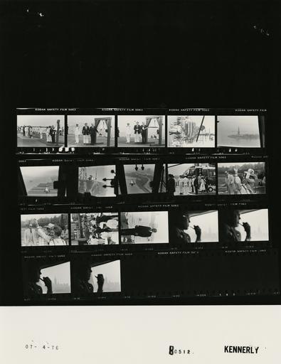 | Keywords: Ford B0512 NLGRF photo contact sheet (1976-07-04)(Gerald Ford Library).jpg White House Photographic Office WHPO is housed at the Gerald R Ford Presidential Library a branch of the National Archives and Records Administration NARA <br/><br/> This file is a 200 dpi photo contact sheet having images from roll of film B0512 of the August 9 1974 - January 20 1977 Gerald R Ford White House Photographic Office Series A0001-A9999 and B0001-B2886 photographs <br/><br/> The date on the photo contact sheet is the date the roll of film was processed not necessarily the date the photographs were taken See table below for additional details 1976-07-04 Gerald R Ford Presidential Library Image http //www fordlibrarymuseum gov/library/whphotos/B0512_NLGRF jpg B0512_NLGRF jpg from http //www fordlibrarymuseum gov/library/whphotos/19760704whpo pdf White House Photographs July 4 1976 of the http //www fordlibrarymuseum gov/Library/whphotos/whpo asp White House Photographic Collection page White House Photographic Office WHPO <br/> Creator David Hume Kennerly PD-USGov Institution Institution Gerald R Ford Presidential Library Table wikitable sortable + Photo contact sheet B0512 U S President Ford Administration Gerald R Ford Library Frame s Tone Subject proper Subject generic Names Geographic Location Photographer Date - 2A BW 4th of July Bicentennial Event - Ringing of the Bicentennial Bell on the Flight Deck of the USS Forrestal CV-59 ; Administrator American Revolution Bicentennial Administration ARBA ; Commander US Navy North Atlantic Fleet; Captain USS Forrestal GRF and Warner standing next to Bicentennial Bell; others standing to side; all not in frame GRF John Warner Adm Mrs Isaac Kidd Capt Mrs Joseph Barth Sec Mrs J William Middendorf Mr Mrs Emil Mosbacher Susan Ford New York Harbor New York City NY Flight Deck USS Forrestal CV59 Kennerly 1976-07-04 - 3A-4A BW 4th of July Bicentennial Event - Ringing of the Bicentennial Bell on the Flight Deck of the USS Forrestal CV-59 ; Administrator American Revolution Bicentennial Administration ARBA ; Captain USS Forrestal GRF pulling lanyard on Bicentennial Bell; others standing to side GRF John Warner Capt Joseph Barth New York Harbor New York City NY Flight Deck USS Forrestal CV59 Kennerly 1976-07-04 - 5A BW 4th of July Bicentennial Event - Following Ringing of the Bicentennial Bell on the Flight Deck of the USS Forrestal CV-59 ; Prior to Helicopter Flight to the USS Nashville LPD-13 ; Commander US Navy North Atlantic Fleet; Captain USS Forrestal GRF Kidd Barth walking handshaking; others walking behind; Aircraft Carrier Island in background; helicopter rotor in foreground GRF Adm Isaac Kidd Capt Joseph Barth Betty Ford Susan Ford; Others New York Harbor New York City NY Flight Deck USS Forrestal CV59 Kennerly 1976-07-04 - 6A BW 4th of July Bicentennial Event - Helicopter Flight from USS Forrestal CV-59 to USS Nashville LPD-13 long shots of Statue of Liberty; Naval vesssels and civilian boats surrounding island New York Harbor New York City NY Over Liberty Island in Marine One Kennerly 1976-07-04 - 7A-9A BW 4th of July Bicentennial Event - Helicopter Flight from USS Forrestal CV-59 to USS Nashville LPD-13 Shots out window of Marine One backup in flight New York Harbor New York City NY Over New York City in Marine One Kennerly 1976-07-04 - 10A BW 4th of July Bicentennial Event - Arrival on USS Nashville LPD-13 - Captain USS Nashville - Operation Sail standing near Marine One; copter in background GRF Betty Ford Capt Herbert Dowse Naval Personnel Others New York Harbor New York City NY USS Nashville LPD-13 Kennerly 1976-07-04 - 11A-12A BW 4th of July Bicentennial Event - Arrival on USS Nashville LPD-13 - Operation Sail walking across deck; BF waving; close up profile portrait Betty Ford Susan New York Harbor New York City NY USS Nashville LPD-13 Kennerly 1976-07-04 - 13A 4th of July Bicentennial Event - Captain USS Nashville LPD-13 - Operation Sail walking across deck GRF Capt Herbert Dowse Naval Personnel Others New York Harbor New York City NY USS Nashville LPD-13 Kennerly 1976-07-04 - 14A BW 4th of July Bicentennial Event - Aboard USS Nashville LPD-13 - Operation Sail standing on deck waving at ships passing by GRF New York Harbor New York City NY USS Nashville LPD-13 Kennerly 1976-07-04 - 15A-18A BW 4th of July Bicentennial Event - Flight to Newark International Airport Following Operation Sail seated smoking pipe; looking out window; Empire State Building in background GRF New York City NY Marine One Kennerly 1976-07-04 Gerald R Ford Presidential Library and Museum-cooperation PD-USGov Contact sheets by the Ford White House July 1976 Photographs by David Hume Kennerly from 1976 |