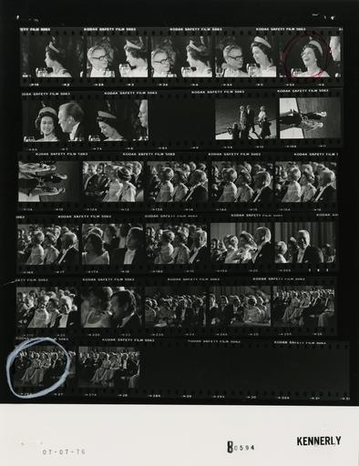 | Keywords: Ford B0594 NLGRF photo contact sheet (1976-07-07)(Gerald Ford Library).jpg White House Photographic Office WHPO is housed at the Gerald R Ford Presidential Library a branch of the National Archives and Records Administration NARA <br/><br/> This file is a 200 dpi photo contact sheet having images from roll of film B0594 of the August 9 1974 - January 20 1977 Gerald R Ford White House Photographic Office Series A0001-A9999 and B0001-B2886 photographs <br/><br/> The date on the photo contact sheet is the date the roll of film was processed not necessarily the date the photographs were taken See table below for additional details 1976-07-07 Gerald R Ford Presidential Library Image http //www fordlibrarymuseum gov/library/whphotos/B0594_NLGRF jpg B0594_NLGRF jpg from http //www fordlibrarymuseum gov/library/whphotos/19760707whpo pdf White House Photographs July 7 1976 of the http //www fordlibrarymuseum gov/Library/whphotos/whpo asp White House Photographic Collection page White House Photographic Office WHPO <br/> Creator David Hume Kennerly PD-USGov Institution Institution Gerald R Ford Presidential Library Table wikitable sortable + Photo contact sheet B0594 U S President Ford Administration Gerald R Ford Library Frame s Tone Subject proper Subject generic Names Geographic Location Photographer Date - 1A BW State Dinner in Honor of Queen Elizabeth II and Prince Philip seated at table; lhead and shoulder portrait; eft side profile; white tie formal wear Queen Elizabeth II Tent on South Lawn Kennerly 1976-07-07 - 2A-4A BW State Dinner in Honor of Queen Elizabeth II and Prince Philip seated at table talking; head and shoulder portraits; white tie formal wear Rockefeller Queen Elizabeth II Tent on South Lawn Kennerly 1976-07-07 - 5A-7A BW State Dinner in Honor of Queen Elizabeth II and Prince Philip seated at table talking laughing; head and shoulder portraits; GRF right side profile; white tie formal wear GRF Queen Elizabeth II Tent on South Lawn Kennerly 1976-07-07 - 8A BW Kennerly 1976-07-07 - 9A BW State Dinner in Honor of Queen Elizabeth II and Prince Philip walking toward White House; musicians standing playing string instruments; formal waer John Connally Nellie Connally Others; Musicians South Lawn - Walkway to White House Kennerly 1976-07-07 - 10A BW State Dinner in Honor of Queen Elizabeth II and Prince Philip; United States Senator from Montana walking toward White House; musicians standing playing string instruments; formal waer Sen Mrs Mansfield Others; Musicians South Lawn -Walkway to White House Kennerly 1976-07-07 - 11A BW State Dinner in Honor of Queen Elizabeth II and Prince Philip; United States Senator from Montana walking toward White House; musicians standing playing string instruments; formal waer John Mrs Marsh Others; Musicians South Lawn - Walkway to White House Kennerly 1976-07-07 - 12A-16A BW Entertainment Portion of State Dinner in Honor of Queen Elizabeth II and Prince Philip seated smiling watching performance by The Captain and Tenille not seen ; white tie formal wear GRF Betty Ford Queen Elizabeth II Prince Philip; guests East Room Kennerly 1976-07-07 - 17A BW Entertainment Portion of State Dinner in Honor of Queen Elizabeth II and Prince Philip seated smiling watching performance by The Captain and Tenille not seen ; white tie formal wear Jack Ford Melinda McCloud East Room Kennerly 1976-07-07 - 18A-21A BW Entertainment Portion of State Dinner in Honor of Queen Elizabeth II and Prince Philip seated smiling watching performance by The Captain and Tenille not seen ; white tie formal wear; all not in every frame GRF Betty Ford Queen Elizabeth II Prince Philip; guests East Room Kennerly 1976-07-07 - 22A BW Entertainment Portion of State Dinner in Honor of Queen Elizabeth II and Prince Philip seated smiling watching performance by The Captain and Tenille not seen ; man smoking cigar; white tie formal wear Unidentified Man Woman East Room Kennerly 1976-07-07 - 23A-27A BW Entertainment Portion of State Dinner in Honor of Queen Elizabeth II and Prince Philip seated smiling laughing; watching performance Bob Hope not seen ; white tie formal wear; all not in every frame GRF Betty Ford Queen Elizabeth II Prince Philip; Vice President Mrs Rockefeller; guests East Room Kennerly 1976-07-07 Gerald R Ford Presidential Library and Museum-cooperation PD-USGov Contact sheets by the Ford White House July 1976 Photographs by David Hume Kennerly from 1976 |