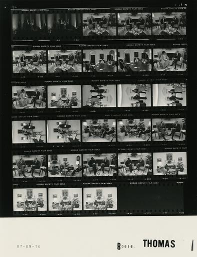 | Keywords: Ford B0616 NLGRF photo contact sheet (1976-07-08)(Gerald Ford Library).jpg White House Photographic Office WHPO is housed at the Gerald R Ford Presidential Library a branch of the National Archives and Records Administration NARA <br/><br/> This file is a 200 dpi photo contact sheet having images from roll of film B0616 of the August 9 1974 - January 20 1977 Gerald R Ford White House Photographic Office Series A0001-A9999 and B0001-B2886 photographs <br/><br/> The date on the photo contact sheet is the date the roll of film was processed not necessarily the date the photographs were taken See table below for additional details 1976-07-08 Gerald R Ford Presidential Library Image http //www fordlibrarymuseum gov/library/whphotos/B0616_NLGRF jpg B0616_NLGRF jpg from http //www fordlibrarymuseum gov/library/whphotos/19760708whpo pdf White House Photographs July 8 1976 of the http //www fordlibrarymuseum gov/Library/whphotos/whpo asp White House Photographic Collection page White House Photographic Office WHPO - Thomas PD-USGov Institution Institution Gerald R Ford Presidential Library Table wikitable sortable + Photo contact sheet B0616 U S President Ford Administration Gerald R Ford Library Frame s Tone Subject proper Subject generic Names Geographic Location Photographer Date - 5-6 BW Prior to GRF's Departure from Reciprocal State Dinner Hosted by Queen Elizabeth II and Prince Philip at the British Embassy standing waving smiling; night shot white tie formal wear GRF Queen Elizabeth II Washington DC South Grounds of the Embassy of Great Britain Thomas 1976-07-08 - 7-11 BW Interview with Washington Correspondent from the Salt Lake City Desert News seated talking near fireplace GRF Gordon E White Oval Office Thomas 1976-07-09 - 12-13 BW Prior to Presentation of Diplomatic Credentials of the Ambassador-Designate from the Islamic Republic of Mauritania; Deputy Assistant Secretary of State seated at table talking smiling Mohamed Nassim Kochman Charles James; Others Cabinet Room Thomas 1976-07-09 - 4-15 BW Presentation of Diplomatic Credentials of the Ambassador-Designate from the Islamic Republic of Mauritania seated near fireplace talking GRF Mohamed Nassim Kochman Oval Office Thomas 1976-07-09 - 16 BW Presentation of Diplomatic Credentials of the Ambassador-Designate from the Islamic Republic of Mauritania; Deputy Assistant for National Security Affairs; Deputy Assistant Secretary of State seated near fireplace talking GRF William Hyland Mohamed Nassim Kochman Charles James Oval Office Thomas 1976-07-09 - 17-21 BW Deputy Assistant for National Security Affairs standing talking near desk GRF William Hyland Oval Office Thomas 1976-07-09 - 22-23 BW Presentation of Diplomatic Credentials of the Ambassador-Designate from the Socialist Republic of Romania; Deputy Assistant for National Security Affairs; Interpretor; Deputy Assistant Secretary of State seated near fireplace talking GRF William Hyland Nicolae M Nicolae Richard Christensen Arthur Hartmann Oval Office Thomas 1976-07-09 - 24-25 BW Presentation of Diplomatic Credentials of the Ambassador-Designate from the Socialist Republic of Romania seated near fireplace talking GRF Nicolae M Nicolae Oval Office Thomas 1976-07-09 - 26 BW Presentation of Diplomatic Credentials of the Ambassador-Designate from the Socialist Republic of Romania; Deputy Assistant for National Security Affairs; Interpretor; Deputy Assistant Secretary of State seated near fireplace talking GRF William Hyland Nicolae M Nicolae Richard Christensen Arthur Hartmann Oval Office Thomas 1976-07-09 - 27-28 BW Presentation of Diplomatic Credentials of the Ambassador-Designate from the Republic of Zaire seated near fireplace talking GRF Bolumba Assal Idzumbuir Oval Office Thomas 1976-07-09 - 29-33 BW Presentation of Diplomatic Credentials of the Ambassador-Designate from the Republic of Zaire; Deputy Assistant for National Security Affairs; Interpretor; Deputy Assistant Secretary of State seated near fireplace talking GRF Bolumba Assal Idzumbuir William Hyland Charles James Oval Office Thomas 1976-07-09 Gerald R Ford Presidential Library and Museum-cooperation PD-USGov Contact sheets by the Ford White House July 1976 |