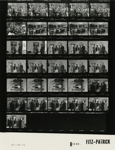 | Keywords: Ford B0642 NLGRF photo contact sheet (1976-07-13)(Gerald Ford Library).jpg White House Photographic Office WHPO is housed at the Gerald R Ford Presidential Library a branch of the National Archives and Records Administration NARA <br/><br/> This file is a 200 dpi photo contact sheet having images from roll of film B0642 of the August 9 1974 - January 20 1977 Gerald R Ford White House Photographic Office Series A0001-A9999 and B0001-B2886 photographs <br/><br/> The date on the photo contact sheet is the date the roll of film was processed not necessarily the date the photographs were taken See table below for additional details 1976-07-13 Gerald R Ford Presidential Library Image http //www fordlibrarymuseum gov/library/whphotos/B0642_NLGRF jpg B0642_NLGRF jpg from http //www fordlibrarymuseum gov/library/whphotos/19760713whpo pdf White House Photographs July 13 1976 of the http //www fordlibrarymuseum gov/Library/whphotos/whpo asp White House Photographic Collection page White House Photographic Office WHPO - Fitz-Patrick PD-USGov Institution Institution Gerald R Ford Presidential Library Table wikitable sortable + Photo contact sheet B0642 U S President Ford Administration Gerald R Ford Library Frame s Tone Subject proper Subject generic Names Geographic Location Photographer Date - 2-7 BW Meeting with Law Enforcement Officials Who Participated in Fake fencing Operations in Washington DC; Sting I Sting II GRF at microphone addressing group; medium range; Old Executive Office Building in background GRF Washington Metropolitan Police Department Officers Federal Bureau of Investigation FBI Agents Bureau of Alcohol Tobacco Firearms ATF Agents; Media Others Driveway Between White House and The Old Executive Office Building OEOB Fitz-Patrick 1976-07-13 - 8-11 BW Meeting with Law Enforcement Officials Who Participated in Fake fencing Operations in Washington DC; Sting I Sting II GRF at microphone addressing group; long range; all not in frames GRF Washington Metropolitan Police Department Officers Federal Bureau of Investigation FBI Agents Bureau of Alcohol Tobacco Firearms ATF Agents; Media Others Driveway Between White House and The Old Executive Office Building OEOB Fitz-Patrick 1976-07-13 - 12-13 BW President Carmichael Volkswagen; Delegate at large from Mississippi standing talking GRF Gilbert Carmichael Oval Office Fitz-Patrick 1976-07-13 - 14-25 BW Meeting with 1975 Farm Family of the Year standing talking posing GRF Wilmer Powell Jean Powell Suzanne Powell Oval Office Fitz-Patrick 1976-07-13 - 26-32 BW Meeting with 1975 Farm Family of the Year; Secretary of Agriculture standing talking posing GRF Wilmer Powell Jean Powell Suzanne Powell; Earl Butz Oval Office Fitz-Patrick 1976-07-13 Gerald R Ford Presidential Library and Museum-cooperation PD-USGov Contact sheets by the Ford White House July 1976 |