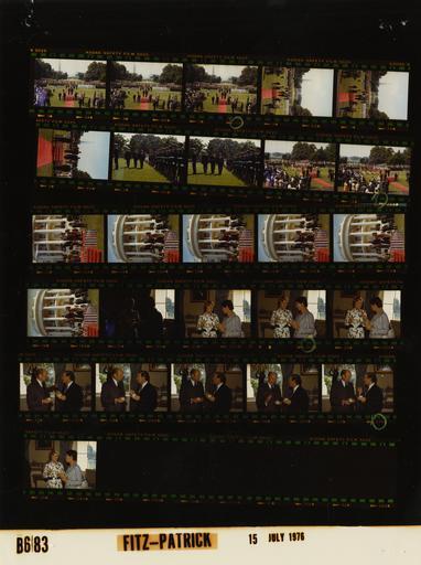 | Keywords: Ford B0683 NLGRF photo contact sheet (1976-07-15)(Gerald Ford Library).jpg White House Photographic Office WHPO is housed at the Gerald R Ford Presidential Library a branch of the National Archives and Records Administration NARA <br/><br/> This file is a 200 dpi photo contact sheet having images from roll of film B0683 of the August 9 1974 - January 20 1977 Gerald R Ford White House Photographic Office Series A0001-A9999 and B0001-B2886 photographs <br/><br/> The date on the photo contact sheet is the date the roll of film was processed not necessarily the date the photographs were taken See table below for additional details 1976-07-15 Gerald R Ford Presidential Library Image http //www fordlibrarymuseum gov/library/whphotos/B0683_NLGRF jpg B0683_NLGRF jpg from http //www fordlibrarymuseum gov/library/whphotos/19760715whpo pdf White House Photographs July 15 1976 of the http //www fordlibrarymuseum gov/Library/whphotos/whpo asp White House Photographic Collection page White House Photographic Office WHPO - Fitz-Patrick PD-USGov Institution Institution Gerald R Ford Presidential Library Table wikitable sortable + Photo contact sheet B0683 U S President Ford Administration Gerald R Ford Library Frame s Tone Subject proper Subject generic Names Geographic Location Photographer Date - 3-8 Color State Arrival Ceremony for the Chancellor of the Federal Republic of Germany FRG Mrs Schmidt GRF and Helmut Schmidt on lectern backs to camera facing honor guard; others standing; long shots from Truman Balcony GRF Betty Ford Helmut Schmidt Loki Schmidt; Honor Guard Others South Lawn Fitz-Patrick 1976-07-15 - 9-10 Color State Arrival Ceremony for the Chancellor of the Federal Republic of Germany FRG Mrs Schmidt GRF and Schmidt walking past Honor Guard moving toward camera GRF Helmut Schmidt Captain of the Guard Honor Guard South Lawn Fitz-Patrick 1976-07-15 - 11-12 Color State Arrival Ceremony for the Chancellor of the Federal Republic of Germany FRG Mrs Schmidt RF and Helmut Schmidt on lectern backs to camera facing honor guard and military band; others standing; long shots from Truman Balcony GRF Betty Ford Helmut Schmidt Loki Schmidt; Honor Guard Old Guard Fife Drum Corps; Others South Lawn Fitz-Patrick 1976-07-15 - 13-16 Color State Arrival Ceremony for the Chancellor of the Federal Republic of Germany FRG Mrs Schmidt GRF and Helmut Schmidt standing on lectern GRF at microphone speaking; others standing; White House and Truman Balcony in background GRF Helmut Schmidt; Others South Lawn Fitz-Patrick 1976-07-15 - 17-18 Color State Arrival Ceremony for the Chancellor of the Federal Republic of Germany FRG Mrs Schmidt GRF and Helmut Schmidt standing on lectern Schmidt at microphone speaking; others standing; White House and Truman Balcony in background GRF Helmut Schmidt; Others South Lawn Fitz-Patrick 1976-07-15 - 19-22 Color Reception Following State Arrival Ceremony for the Chancellor of the Federal Republic of Germany FRG Mrs Schmidt standing talking; BF holding cup and saucer; 1st frame dark Betty Ford Loki Schmidt Blue Room Fitz-Patrick 1976-07-15 - 23-27 Color Reception Following State Arrival Ceremony for the Chancellor of the Federal Republic of Germany FRG Mrs Schmidt standing talking; holding cups and saucers GRF Helmut Schmidt Blue Room Fitz-Patrick 1976-07-15 - 28 Color Reception Following State Arrival Ceremony for the Chancellor of the Federal Republic of Germany FRG Mrs Schmidt standing talking; BF holding cup and saucer Betty Ford Loki Schmidt Blue Room Fitz-Patrick 1976-07-15 Gerald R Ford Presidential Library and Museum-cooperation PD-USGov Contact sheets by the Ford White House July 1976 Old Guard Fife and Drum Corps |
