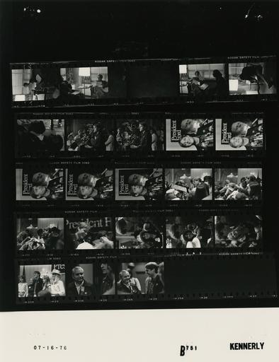| Keywords: Ford B0751 NLGRF photo contact sheet (1976-07-16)(Gerald Ford Library).jpg White House Photographic Office WHPO is housed at the Gerald R Ford Presidential Library a branch of the National Archives and Records Administration NARA <br/><br/> This file is a 200 dpi photo contact sheet having images from roll of film B0751 of the August 9 1974 - January 20 1977 Gerald R Ford White House Photographic Office Series A0001-A9999 and B0001-B2886 photographs <br/><br/> The date on the photo contact sheet is the date the roll of film was processed not necessarily the date the photographs were taken See table below for additional details 1976-07-16 Gerald R Ford Presidential Library Image http //www fordlibrarymuseum gov/library/whphotos/B0751_NLGRF jpg B0751_NLGRF jpg from http //www fordlibrarymuseum gov/library/whphotos/19760716whpo pdf White House Photographs July 16 1976 of the http //www fordlibrarymuseum gov/Library/whphotos/whpo asp White House Photographic Collection page White House Photographic Office WHPO <br/> Creator David Hume Kennerly PD-USGov Institution Institution Gerald R Ford Presidential Library Table wikitable sortable + Photo contact sheet B0751 U S President Ford Administration Gerald R Ford Library Frame s Tone Subject proper Subject generic Names Geographic Location Photographer Date - 2A-5A BW Jack Ford Campaign Trip to Hartford Connecticut - Prior to Presidentials Program Kick-off seated talking; Jack reading document; 4A frame blank Jack Ford Unidentified Men Women Advance staff Hartford CT Hilton Hotel - President's Suite Kennerly 1976-07-16 - 6A BW Jack Ford Campaign Trip to Hartford Connecticut - Prior to Presidentials Program Kick-off seated reading document Jack Ford Hartford CT Hilton Hotel - President's Suite Kennerly 1976-07-16 - 7A BW Jack Ford Campaign Trip to Hartford Connecticut - Prior to Presidentials Program Kick-off smiling; head and shoulder profile portrait Jack Ford Unidentified Woman Hartford CT Unidentified Location Kennerly 1976-07-16 - 8A-9A BW Jack Ford Campaign Trip to Hartford Connecticut - Presidentials Program Kick-off Jack at lectern speaking; crowd in foreground Jack Ford; Crowd Hartford CT Unidentified Location Kennerly 1976-07-16 - 10A-14A BW Jack Ford Campaign Trip to Hartford Connecticut - Presidentials Program Kick-off at lectern speaking; head and shoulder portraits Jack Ford Hartford CT Unidentified Location Kennerly 1976-07-16 - 15A-21A BW Jack Ford Campaign Trip to Hartford Connecticut - Presidentials Program Kick-off greeting handshaking standing talking smiling signing autographs; various angles and distances; all not in every frame Jack Ford Crowd Hartford CT Unidentified Location Kennerly 1976-07-16 - 22A BW Jack Ford Campaign Trip to Hartford Connecticut - Presidentials Program Kick-off standing posing; one woman wearing styrofoam straw hat Jack Ford Four Unidentified Young Ladies Hartford CT Unidentified Location Kennerly 1976-07-16 - 23A-24A BW Jack Ford Campaign Trip to Hartford Connecticut - Presidentials Program Kick-off standing talking smiling Jack Ford Unidentified Man Hartford CT Unidentified Location Kennerly 1976-07-16 Gerald R Ford Presidential Library and Museum-cooperation PD-USGov Contact sheets by the Ford White House July 1976 Photographs by David Hume Kennerly from 1976 |