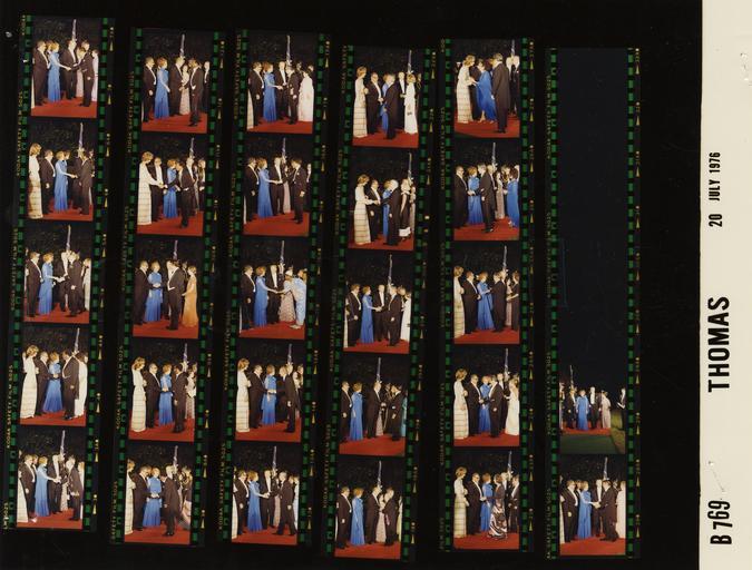 | Keywords: Ford B0769 NLGRF photo contact sheet (1976-07-20)(Gerald Ford Library).jpg White House Photographic Office WHPO is housed at the Gerald R Ford Presidential Library a branch of the National Archives and Records Administration NARA <br/><br/> This file is a 200 dpi photo contact sheet having images from roll of film B0769 of the August 9 1974 - January 20 1977 Gerald R Ford White House Photographic Office Series A0001-A9999 and B0001-B2886 photographs <br/><br/> The date on the photo contact sheet is the date the roll of film was processed not necessarily the date the photographs were taken See table below for additional details 1976-07-20 Gerald R Ford Presidential Library Image http //www fordlibrarymuseum gov/library/whphotos/B0769_NLGRF jpg B0769_NLGRF jpg from http //www fordlibrarymuseum gov/library/whphotos/19760720whpo pdf White House Photographs July 20 1976 of the http //www fordlibrarymuseum gov/Library/whphotos/whpo asp White House Photographic Collection page White House Photographic Office WHPO - Thomas PD-USGov Institution Institution Gerald R Ford Presidential Library Table wikitable sortable + Photo contact sheet B0769 U S President Ford Administration Gerald R Ford Library Frame s Tone Subject proper Subject generic Names Geographic Location Photographer Date - 3-28 Color Receiving Line for Concert and Reception for Members of the Diplomatic Corps to Celebrate the American Revolution Bicentennial greeting handshaking standing talking; various angles and distances; all not in every frame; white tie formal wear GRF Betty Ford Henry Nancy Kissinger; Guests South Lawn Thomas 1976-07-20 - 29 Color Following Receiving Line for Concert and Reception for Members of the Diplomatic Corps to Celebrate the American Revolution Bicentennial standing talking on red carpet; white tie formal wear GRF Betty Ford Shirley Temple Black Kissinger South Driveway Thomas 1976-07-20 Gerald R Ford Presidential Library and Museum-cooperation PD-USGov Contact sheets by the Ford White House July 1976 |