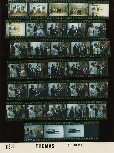 | Keywords: Ford B0838 NLGRF photo contact sheet (1976-07-27)(Gerald Ford Library).jpg White House Photographic Office WHPO is housed at the Gerald R Ford Presidential Library a branch of the National Archives and Records Administration NARA <br/><br/> This file is a 200 dpi photo contact sheet having images from roll of film B0838 of the August 9 1974 - January 20 1977 Gerald R Ford White House Photographic Office Series A0001-A9999 and B0001-B2886 photographs <br/><br/> The date on the photo contact sheet is the date the roll of film was processed not necessarily the date the photographs were taken See table below for additional details 1976-07-27 Gerald R Ford Presidential Library Image http //www fordlibrarymuseum gov/library/whphotos/B0838_NLGRF jpg B0838_NLGRF jpg from http //www fordlibrarymuseum gov/library/whphotos/19760727whpo pdf White House Photographs July 27 1976 of the http //www fordlibrarymuseum gov/Library/whphotos/whpo asp White House Photographic Collection page White House Photographic Office WHPO - Thomas PD-USGov Institution Institution Gerald R Ford Presidential Library Table wikitable sortable + Photo contact sheet B0838 U S President Ford Administration Gerald R Ford Library Frame s Tone Subject proper Subject generic Names Geographic Location Photographer Date - 4-5 Color Prior to State Dinner for the Prime Minister of Australia seated in corner of room playing instruments Military String Quintet Entrance Hall/Grand Hall Thomas 1976-07-27 - 6-7 Color Private Reception Prior to the State Dinner for the Prime Minister of Australia standing talking in groups; long shots from across room; all not in frames; formal wear GRF Betty Ford Malcolm Fraser Tamara Fraser Henry Kissinger Kissinger Nancy Kissinger Andrew Peacock Amb Mrs Nicholas Parkinson Amb Mrs James Hargrove Shirley Temple Black Second Floor - Yellow Oval Room Thomas 1976-07-27 - 8-9 Color Private Reception Prior to the State Dinner for the Prime Minister of Australia standing talking posing; formal wear Betty Ford Tamara Fraser Second Floor - Yellow Oval Room Thomas 1976-07-27 - 10 Color Receiving Line for After Dinner Guests at the State Dinner for the Prime Minister of Australia greeting handshaking standing talking; formal wear Betty Ford Tamara Fraser Unidentified Woman East Room Thomas 1976-07-27 - 11 Color Receiving Line for After Dinner Guests at the State Dinner for the Prime Minister of Australia greeting handshaking standing talking; formal wear GRF Malcolm Fraser Unidentified Woman East Room Thomas 1976-07-27 - 12-13 Color Receiving Line for After Dinner Guests at the State Dinner for the Prime Minister of Australia - Guest of David Hume Kennerly greeting handshaking standing talking; formal wear GRF Malcolm Fraser Paula Ahalt East Room Thomas 1976-07-27 - 14 Color Receiving Line for After Dinner Guests at the State Dinner for the Prime Minister of Australia - Guest of David Hume Kennerly greeting handshaking standing talking; formal wear Betty Ford Tamara Fraser Paula Ahalt East Room Thomas 1976-07-27 - 15 Color Receiving Line for After Dinner Guests at the State Dinner for the Prime Minister of Australia greeting handshaking standing talking; formal wear GRF Malcolm Fraser Betty Ford Unidentified Man East Room Thomas 1976-07-27 - 16 Color Receiving Line for After Dinner Guests at the State Dinner for the Prime Minister of Australia greeting handshaking standing talking; formal wear GRF Malcolm Fraser Betty Ford Unidentified Man East Room Thomas 1976-07-27 - 17 Color Receiving Line for After Dinner Guests at the State Dinner for the Prime Minister of Australia - Radio Newsman greeting handshaking standing talking; formal wear GRF Malcolm Fraser Paul Harvey East Room Thomas 1976-07-27 - 18 Color Receiving Line for After Dinner Guests at the State Dinner for the Prime Minister of Australia - Radio Newsman greeting handshaking standing talking; formal wear Betty Ford Tamara Fraser Paul Harvey East Room Thomas 1976-07-27 - 19 Color Receiving Line for After Dinner Guests at the State Dinner for the Prime Minister of Australia greeting handshaking standing talking; formal wear Betty Ford Tamara Fraser Unidentified Woman East Room Thomas 1976-07-27 - 20-21 Color Receiving Line for After Dinner Guests at the State Dinner for the Prime Minister of Australia - American Tennis Star - Chief of Protocol greeting handshaking standing talking; formal wear GRF Malcolm Fraser Jimmy Connors; Shirley Temple Black East Room Thomas 1976-07-27 - 22-30 Color Receiving Line for After Dinner Guests at the State Dinner for the Prime Minister of Australia - Chief of Protocol greeting handshaking standing talking; all not in every frame; formal wear GRF Betty Ford Malcolm Fraser Tamara Fraser; Shirley Temple Black; Others East Room Thomas 1976-07-27 - 31 Color Receiving Line for After Dinner Guests at the State Dinner for the Prime Minister of Australia - Australian Tennis Star standing posing formal wear Bush Mr Mrs John Newcombe East Room Thomas 1976-07-27 - 32-33 Color Receiving Line for After Dinner Guests at the State Dinner for the Prime Minister of Australia - Chief of Protocol greeting handshaking standing talking; all not in every frame; formal wear GRF Betty Ford Malcolm Fraser Tamara Fraser; Shirley Temple Black; Others East Room Thomas 1976-07-27 - 34 Color State Dinner for the Prime Minister of Australia walking into room in pairs; aides standing at attention in room; formal wear GRF Tamara Fraser; Betty Ford Malcolm Fraser; Military Aides Blue Room Thomas 1976-07-27 - 35 Color State Dinner for the Prime Minister of Australia stepping out door from Blue Room; formal wear GRF Tamara Fraser Truman Balcony Thomas 1976-07-27 - 36 Color State Dinner for the Prime Minister of Australia stepping out door from Blue Room; formal wear Betty Ford Malcolm Fraser Truman Balcony Thomas 1976-07-27 Gerald R Ford Presidential Library and Museum-cooperation PD-USGov Contact sheets by the Ford White House July 1976 John Newcom