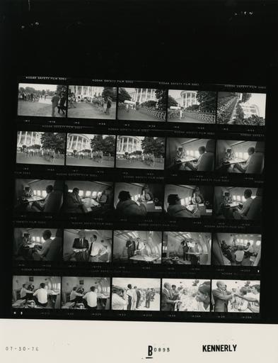 | Keywords: Ford B0895 NLGRF photo contact sheet (1976-07-30)(Gerald Ford Library).jpg White House Photographic Office WHPO is housed at the Gerald R Ford Presidential Library a branch of the National Archives and Records Administration NARA <br/><br/> This file is a 200 dpi photo contact sheet having images from roll of film B0895 of the August 9 1974 - January 20 1977 Gerald R Ford White House Photographic Office Series A0001-A9999 and B0001-B2886 photographs <br/><br/> The date on the photo contact sheet is the date the roll of film was processed not necessarily the date the photographs were taken See table below for additional details 1976-07-30 Gerald R Ford Presidential Library Image http //www fordlibrarymuseum gov/library/whphotos/B0895_NLGRF jpg B0895_NLGRF jpg from http //www fordlibrarymuseum gov/library/whphotos/19760730whpo pdf White House Photographs July 30 1976 of the http //www fordlibrarymuseum gov/Library/whphotos/whpo asp White House Photographic Collection page White House Photographic Office WHPO <br/> Creator David Hume Kennerly PD-USGov Institution Institution Gerald R Ford Presidential Library Table wikitable sortable + Photo contact sheet B0895 U S President Ford Administration Gerald R Ford Library Frame s Tone Subject proper Subject generic Names Geographic Location Photographer Date - 1 BW Prior to Departure for Andrews Air Force Base Maryland GRF and O'Donnell backs to camera walking toward helicopter Marine One in background; crowd on left of frame walking toward GRF GRF O'Donnell; Crowd South Driveway Kennerly 1976-07-30 - 2 BW Meeting with Christian Youth Fellowship Bicyclists Who Bicycled from Grand Rapids Michigan to Washington DC GRF approaching group; group on driveway; Truman Balcony and South Portico in background GRF Betty Ford Christian Youth Fellowship Bicyclists; Others South Driveway Kennerly 1976-07-30 - 3-5 BW Meeting with Christian Youth Fellowship Bicyclists Who Bicycled from Grand Rapids Michigan to Washington DC walking along line of parked touring bicycles; Truman Balcony and South Portico in background GRF Betty Ford Christian Youth Fellowship Bicyclists; Others South Driveway Kennerly 1976-07-30 - 6-8 BW Meeting with Christian Youth Fellowship Bicyclists Who Bicycled from Grand Rapids Michigan to Washington DC standing posing; Truman Balcony South Portico and others in background GRF Betty Ford Christian Youth Fellowship Bicyclists; Others South Driveway Kennerly 1976-07-30 - 9-16 BW Flight From Andrews Air Force Base Maryland to Jackson Mississippi; Interview with Newsweek Correspondent seated at table talking; various angles and distances GRF Tom DeFrank Air Force One - President's Cabin Kennerly 1976-07-30 - 17-19 BW Flight From Andrews Air Force Base Maryland to Jackson Mississippi; United States Senator from Michigan standing talking looking at documents; various distances GRF Sen Griffin Air Force One - President's Cabin Kennerly 1976-07-30 - 20-22 BW Flight From Andrews Air Force Base Maryland to Jackson Mississippi; United States Senator from Michigan; US Representatives from Mississippi seated talking; various angles and distances; Griffin obscured in last 2 frames GRF Sen Griffin Reps Trent Lott Thadeus Cochran Air Force One - President's Cabin Kennerly 1976-07-30 - 23-25 BW Campaign Trip to Mississippi to Meet Mississippi Delegates and Alternates to the Republican National Convention greeting handshaking standing talking; various angles and distances; all not in every frame GRF Crowd Jackson MS Allen C Thompson Field -Tarmac Kennerly 1976-07-30 Gerald R Ford Presidential Library and Museum-cooperation PD-USGov Contact sheets by the Ford White House July 1976 Photographs by David Hume Kennerly from 1976 |