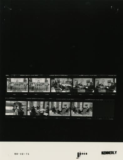 Keywords: Ford B0908 NLGRF photo contact sheet (1976-07-31)(Gerald Ford Library).jpg White House Photographic Office WHPO is housed at the Gerald R Ford Presidential Library a branch of the National Archives and Records Administration NARA <br/><br/> This file is a 200 dpi photo contact sheet having images from roll of film B0908 of the August 9 1974 - January 20 1977 Gerald R Ford White House Photographic Office Series A0001-A9999 and B0001-B2886 photographs <br/><br/> The date on the photo contact sheet is the date the roll of film was processed not necessarily the date the photographs were taken See table below for additional details 1976-07-31 Gerald R Ford Presidential Library Image http //www fordlibrarymuseum gov/library/whphotos/B0908_NLGRF jpg B0908_NLGRF jpg from http //www fordlibrarymuseum gov/library/whphotos/19760731whpo pdf White House Photographs July 31 1976 of the http //www fordlibrarymuseum gov/Library/whphotos/whpo asp White House Photographic Collection page White House Photographic Office WHPO <br/> Creator David Hume Kennerly PD-USGov Institution Institution Gerald R Ford Presidential Library Table wikitable sortable + Photo contact sheet B0908 U S President Ford Administration Gerald R Ford Library Frame s Tone Subject proper Subject generic Names Geographic Location Photographer Date - 2-3 BW Reunion of Yale University Phi Delta Phi Fraternity standing posing on steps GRF Aller Badger Belin Bellows Berry Brown Burns Caesar Calder Clapp Craig Crawford Deming Dempsey Dilworth Ebersol Ecklund Everdell French Gallagher Galland Gary Hallett Hessberg Hornblower Hutson Keefe Kluttz Lamb Others North Portico -Steps Kennerly 1976-07-31 - 4-10 BW Staff Meeting seated around desk; various angles and distances; all not in every frame GRF Jerry Jones Timmons William Rhatican Stanton Anderson Royston Hughes Oval Office Kennerly 1976-07-31 Gerald R Ford Presidential Library and Museum-cooperation PD-USGov Contact sheets by the Ford White House July 1976 Photographs by David Hume Kennerly from 1976 |
