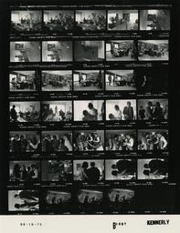 | Keywords: Ford B1087 NLGRF photo contact sheet (1976-08-16)(Gerald Ford Library).jpg White House Photographic Office WHPO is housed at the Gerald R Ford Presidential Library a branch of the National Archives and Records Administration NARA <br/><br/> This file is a 200 dpi photo contact sheet having images from roll of film B1087 of the August 9 1974 - January 20 1977 Gerald R Ford White House Photographic Office Series A0001-A9999 and B0001-B2886 photographs <br/><br/> The date on the photo contact sheet is the date the roll of film was processed not necessarily the date the photographs were taken See table below for additional details 1976-08-16 Gerald R Ford Presidential Library Image http //www fordlibrarymuseum gov/library/whphotos/B1087_NLGRF jpg B1087_NLGRF jpg from http //www fordlibrarymuseum gov/library/whphotos/19760816whpo pdf White House Photographs August 16 1976 of the http //www fordlibrarymuseum gov/Library/whphotos/whpo asp White House Photographic Collection page White House Photographic Office WHPO <br/> Creator David Hume Kennerly PD-USGov Institution Institution Gerald R Ford Presidential Library Table wikitable sortable + Photo contact sheet B1087 U S President Ford Administration Gerald R Ford Library Frame s Tone Subject proper Subject generic Names Geographic Location Photographer Date - 1-3 BW Trip to Kansas City Missouri - Convention seated talking; all not in frames Betty Ford Janet Ford; Ellen Ford; Barbara Ford Kansas City MO Crown Center Hotel - President's Suite Kennerly 1976-08-16 - 4-7 BW Trip to Kansas City Missouri - Convention standing talking Betty Ford Susan Ford Kansas City MO Crown Center Hotel - President's Suite Kennerly 1976-08-16 - 8 BW Trip to Kansas City Missouri - Convention cowboy boots lying on floor near bed Kansas City MO Crown Center Hotel - President's Suite Kennerly 1976-08-16 - 9-14 BW Trip to Kansas City Missouri - Convention - Convention Strategy Meeting seated around table talking; various angles and distances; all not in every frame GRF Marsh Cheney Teeter Stuart Spencer Others Kansas City MO Crown Center Hotel - President's Suite - Office Kennerly 1976-08-16 - 15 BW Trip to Kansas City Missouri - Convention Kansas City MO Kennerly 1976-08-16 - 16 BW Trip to Kansas City Missouri - Convention - Prior ro Private Dinner Hosted by President Mrs Ford seated talking GRF Parma Julie Parma Others Kansas City MO Crown Center Hotel - President's Suite Kennerly 1976-08-16 - 17 BW Trip to Kansas City Missouri - Convention - Prior ro Private Dinner Hosted by President Mrs Ford GRF seated in chair; Secchia seated in wheelchair; Janet Ford standing backlit GRF Janet Ford Secchia Kansas City MO Crown Center Hotel - President's Suite Kennerly 1976-08-16 - 18-19 BW Trip to Kansas City Missouri - Convention - Prior ro Private Dinner Hosted by President Mrs Ford Secchia in wheelchair; BF leaning on his shoulder; GRF in 2nd frame Betty Ford Secchia; GRF Kansas City MO Crown Center Hotel - President's Suite Kennerly 1976-08-16 - 20-27 BW Trip to Kansas City Missouri - Convention - Private Dinner Hosted by President Mrs Ford greeting handshaking; various angles and distances; all not in frames GRF Betty Ford; Jack Steve Susan Ford; Thomas Tom Janet Ford; Richard Dick Ellen Ford; James Jim Barbara Ford; Peter Secchia; Leon Mrs Parma Julie Parma; James Brown; Sheika Gramshammer; Tony Elaine Orlando Kansas City MO Crown Center Hotel - President's Suite Kennerly 1976-08-16 - 28-31 BW Trip to Kansas City Missouri - Convention - Private Dinner Hosted by President Mrs Ford standing talking; facing away from camera GRF Tony Orlando Kansas City MO Crown Center Hotel - President's Suite Kennerly 1976-08-16 - 32-34 BW Trip to Kansas City Missouri - Convention - Rehearsal of Acceptance Speech for the Republican Presidential Nomination GRF standing behind lectern speaking; technicians in foreground in darkness GRF Video Technicians Kansas City MO Crown Center Hotel - Plaza Suite Kennerly 1976-08-16 Gerald R Ford Presidential Library and Museum-cooperation PD-USGov Contact sheets by the Ford White House August 1976 Photographs by David Hume Kennerly from 1976 |