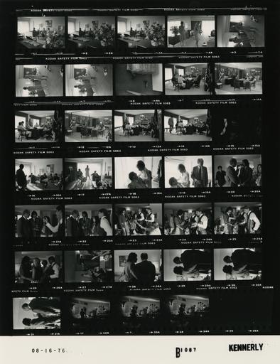 Keywords: Ford B1087 NLGRF photo contact sheet (1976-08-16)(Gerald Ford Library).jpg White House Photographic Office WHPO is housed at the Gerald R Ford Presidential Library a branch of the National Archives and Records Administration NARA <br/><br/> This file is a 200 dpi photo contact sheet having images from roll of film B1087 of the August 9 1974 - January 20 1977 Gerald R Ford White House Photographic Office Series A0001-A9999 and B0001-B2886 photographs <br/><br/> The date on the photo contact sheet is the date the roll of film was processed not necessarily the date the photographs were taken See table below for additional details 1976-08-16 Gerald R Ford Presidential Library Image http //www fordlibrarymuseum gov/library/whphotos/B1087_NLGRF jpg B1087_NLGRF jpg from http //www fordlibrarymuseum gov/library/whphotos/19760816whpo pdf White House Photographs August 16 1976 of the http //www fordlibrarymuseum gov/Library/whphotos/whpo asp White House Photographic Collection page White House Photographic Office WHPO <br/> Creator David Hume Kennerly PD-USGov Institution Institution Gerald R Ford Presidential Library Table wikitable sortable + Photo contact sheet B1087 U S President Ford Administration Gerald R Ford Library Frame s Tone Subject proper Subject generic Names Geographic Location Photographer Date - 1-3 BW Trip to Kansas City Missouri - Convention seated talking; all not in frames Betty Ford Janet Ford; Ellen Ford; Barbara Ford Kansas City MO Crown Center Hotel - President's Suite Kennerly 1976-08-16 - 4-7 BW Trip to Kansas City Missouri - Convention standing talking Betty Ford Susan Ford Kansas City MO Crown Center Hotel - President's Suite Kennerly 1976-08-16 - 8 BW Trip to Kansas City Missouri - Convention cowboy boots lying on floor near bed Kansas City MO Crown Center Hotel - President's Suite Kennerly 1976-08-16 - 9-14 BW Trip to Kansas City Missouri - Convention - Convention Strategy Meeting seated around table talking; various angles and distances; all not in every frame GRF Marsh Cheney Teeter Stuart Spencer Others Kansas City MO Crown Center Hotel - President's Suite - Office Kennerly 1976-08-16 - 15 BW Trip to Kansas City Missouri - Convention Kansas City MO Kennerly 1976-08-16 - 16 BW Trip to Kansas City Missouri - Convention - Prior ro Private Dinner Hosted by President Mrs Ford seated talking GRF Parma Julie Parma Others Kansas City MO Crown Center Hotel - President's Suite Kennerly 1976-08-16 - 17 BW Trip to Kansas City Missouri - Convention - Prior ro Private Dinner Hosted by President Mrs Ford GRF seated in chair; Secchia seated in wheelchair; Janet Ford standing backlit GRF Janet Ford Secchia Kansas City MO Crown Center Hotel - President's Suite Kennerly 1976-08-16 - 18-19 BW Trip to Kansas City Missouri - Convention - Prior ro Private Dinner Hosted by President Mrs Ford Secchia in wheelchair; BF leaning on his shoulder; GRF in 2nd frame Betty Ford Secchia; GRF Kansas City MO Crown Center Hotel - President's Suite Kennerly 1976-08-16 - 20-27 BW Trip to Kansas City Missouri - Convention - Private Dinner Hosted by President Mrs Ford greeting handshaking; various angles and distances; all not in frames GRF Betty Ford; Jack Steve Susan Ford; Thomas Tom Janet Ford; Richard Dick Ellen Ford; James Jim Barbara Ford; Peter Secchia; Leon Mrs Parma Julie Parma; James Brown; Sheika Gramshammer; Tony Elaine Orlando Kansas City MO Crown Center Hotel - President's Suite Kennerly 1976-08-16 - 28-31 BW Trip to Kansas City Missouri - Convention - Private Dinner Hosted by President Mrs Ford standing talking; facing away from camera GRF Tony Orlando Kansas City MO Crown Center Hotel - President's Suite Kennerly 1976-08-16 - 32-34 BW Trip to Kansas City Missouri - Convention - Rehearsal of Acceptance Speech for the Republican Presidential Nomination GRF standing behind lectern speaking; technicians in foreground in darkness GRF Video Technicians Kansas City MO Crown Center Hotel - Plaza Suite Kennerly 1976-08-16 Gerald R Ford Presidential Library and Museum-cooperation PD-USGov Contact sheets by the Ford White House August 1976 Photographs by David Hume Kennerly from 1976