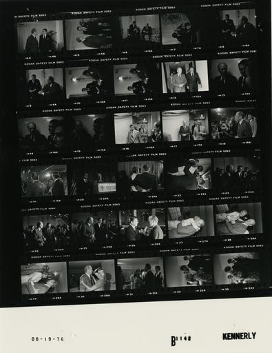 | Keywords: Ford B1142 NLGRF photo contact sheet (1976-08-19)(Gerald Ford Library).jpg White House Photographic Office WHPO is housed at the Gerald R Ford Presidential Library a branch of the National Archives and Records Administration NARA <br/><br/> This file is a 200 dpi photo contact sheet having images from roll of film B1142 of the August 9 1974 - January 20 1977 Gerald R Ford White House Photographic Office Series A0001-A9999 and B0001-B2886 photographs <br/><br/> The date on the photo contact sheet is the date the roll of film was processed not necessarily the date the photographs were taken See table below for additional details 1976-08-19 Gerald R Ford Presidential Library Image http //www fordlibrarymuseum gov/library/whphotos/B1142_NLGRF jpg B1142_NLGRF jpg from http //www fordlibrarymuseum gov/library/whphotos/19760819whpo pdf White House Photographs August 19 1976 of the http //www fordlibrarymuseum gov/Library/whphotos/whpo asp White House Photographic Collection page White House Photographic Office WHPO <br/> Creator David Hume Kennerly PD-USGov Institution Institution Gerald R Ford Presidential Library Table wikitable sortable + Photo contact sheet B1142 U S President Ford Administration Gerald R Ford Library Frame s Tone Subject proper Subject generic Names Geographic Location Photographer Date - 4-11 BW Trip to Kansas City Missouri - Convention - 1 00AM Meeting in Reagan's Suite standing talking in 1st 2 frames seated talking in remainder; some close ups GRF Ronald Reagan Kansas City MO Almeda Plaza Hotel - Tenth Floor - Reagan's Suite Kennerly 1976-08-19 - 12 BW Trip to Kansas City Missouri - Convention - Following 1 00AM Meeting in Reagan's Suite walking talking moving toward elevator not seen GRF Ronald Reagan Others Kansas City MO Almeda Plaza Hotel - Tenth Floor Hallway Kennerly 1976-08-19 - 13-15 BW Trip to Kansas City Missouri - Convention - Following 1 00AM Meeting in Reagan's Suite standing talking; descending toward main floor GRF Ronald Reagan Others Kansas City MO Elevator - Almeda Plaza Hotel Kennerly 1976-08-19 - 16-17 BW Trip to Kansas City Missouri - Convention - Following 1 00AM Meeting in Reagan's Suite walking toward media room GRF Ronald Reagan Sen Laxalt Others Kansas City MO Almeda Plaza Hotel - Main Floor Hallway Kennerly 1976-08-19 - 18-19 BW Trip to Kansas City Missouri - Convention - Meeting with Media after 1 00AM Meeting in Reagan's Suite GRF and Reagan walking toward lectern backs to camera in 2nd frame; media standing GRF Ronald Reagan Media Kansas City MO Almeda Plaza Hotel Kennerly 1976-08-19 - 20 BW Trip to Kansas City Missouri - Convention - Meeting with Media after 1 00AM Meeting in Reagan's Suite at lectern standing talking stern expressions; close up GRF Ronald Reagan Kansas City MO Almeda Plaza Hotel Kennerly 1976-08-19 - 21-22 BW Trip to Kansas City Missouri - Convention - Following Meeting with Media after 1 00AM Meeting in Reagan's Suite arm-in-arm backs to camera GRF Sen Laxalt Kansas City MO Almeda Plaza Hotel Kennerly 1976-08-19 - 23-26 BW Trip to Kansas City Missouri - Convention - Prior to Departure Following 1 00AM Meeting in Reagan's Suite GRF and Reagan walking through media in frames2325; standing talking near limousine in 26 GRF Reagan Media Kansas City MO Almeda Plaza Hotel - Outside Kennerly 1976-08-19 - 27-30 BW Trip to Kansas City Missouri - Convention embracing; all not in every frame GRF Unidentified women sistersin-law friends Kansas City MO Crown Center Hotel - President's Suite Kennerly 1976-08-19 - 31-33 BW Trip to Kansas City Missouri - Convention - Following GRF's Return From Meeting with Ronald Reagan GRF and Susan embracing; Mike looking on; Tom Ford in last frame GRF Mike Ford Susan Ford Kansas City MO Crown Center Hotel - President's Suite Kennerly 1976-08-19 Gerald R Ford Presidential Library and Museum-cooperation PD-USGov Contact sheets by the Ford White House August 1976 Photographs by David Hume Kennerly from 1976 |
