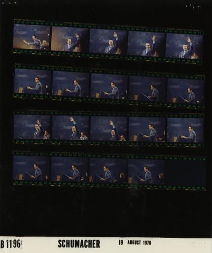 Keywords: Ford B1196 NLGRF photo contact sheet (1976-08-19)(Gerald Ford Library).jpg White House Photographic Office WHPO is housed at the Gerald R Ford Presidential Library a branch of the National Archives and Records Administration NARA <br/><br/> This file is a 200 dpi photo contact sheet having images from roll of film B1196 of the August 9 1974 - January 20 1977 Gerald R Ford White House Photographic Office Series A0001-A9999 and B0001-B2886 photographs <br/><br/> The date on the photo contact sheet is the date the roll of film was processed not necessarily the date the photographs were taken See table below for additional details 1976-08-19 Gerald R Ford Presidential Library Image http //www fordlibrarymuseum gov/library/whphotos/B1196_NLGRF jpg B1196_NLGRF jpg from http //www fordlibrarymuseum gov/library/whphotos/19760819whpo pdf White House Photographs August 19 1976 of the http //www fordlibrarymuseum gov/Library/whphotos/whpo asp White House Photographic Collection page White House Photographic Office WHPO - Schumacher PD-USGov Institution Institution Gerald R Ford Presidential Library Table wikitable sortable + Photo contact sheet B1196 U S President Ford Administration Gerald R Ford Library Frame s Tone Subject proper Subject generic Names Geographic Location Photographer Date - 9-27 Color Trip to Kansas City Missouri - Convention - Remarks of Vice President-Designate at the 5th Session of the Republican National Convention standing at lectern speaking; waving in some frames; medium range from left; interpretor for hearing impaired in some frames Dole Interpretor Kansas City MO Kemper Arena - Podium Schumacher 1976-08-19 Gerald R Ford Presidential Library and Museum-cooperation PD-USGov Contact sheets by the Ford White House August 1976