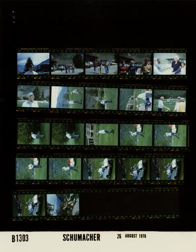 | Keywords: Ford B1303 NLGRF photo contact sheet (1976-08-22)(Gerald Ford Library).jpg White House Photographic Office WHPO is housed at the Gerald R Ford Presidential Library a branch of the National Archives and Records Administration NARA <br/><br/> This file is a 200 dpi photo contact sheet having images from roll of film B1303 of the August 9 1974 - January 20 1977 Gerald R Ford White House Photographic Office Series A0001-A9999 and B0001-B2886 photographs <br/><br/> The date on the photo contact sheet is the date the roll of film was processed not necessarily the date the photographs were taken See table below for additional details 1976-08-22 Gerald R Ford Presidential Library Image http //www fordlibrarymuseum gov/library/whphotos/B1303_NLGRF jpg B1303_NLGRF jpg from http //www fordlibrarymuseum gov/library/whphotos/19760822whpo pdf White House Photographs August 22 1976 of the http //www fordlibrarymuseum gov/Library/whphotos/whpo asp White House Photographic Collection page White House Photographic Office WHPO - Schumacher PD-USGov Institution Institution Gerald R Ford Presidential Library Table wikitable sortable + Photo contact sheet B1303 U S President Ford Administration Gerald R Ford Library Frame s Tone Subject proper Subject generic Names Geographic Location Photographer Date - 4 Color Vacation Trip to Vail Colorado head and shoulder portrait; trees and house in background Unidentified Man Vail CO Street Schumacher 1976-08-22 - 5-7 Color Vacation Trip to Vail Colorado walking approaching camera; Susan wearing El Monte Slim tee shirt Susan Ford Two Secret Service Vail CO Street Schumacher 1976-08-22 - 8 Color Vacation Trip to Vail Colorado - Prior to Round of Golf talking; 1 man holding Coor's can GRF Two Unidentified Men Vail CO Vail Golf Course Schumacher 1976-08-22 - 9 Color Vacation Trip to Vail Colorado - Prior to Round of Golf head and shoulder portrait; cardigan sweater cap GRF Vail CO Driving Range -Vail Golf Course Schumacher 1976-08-22 - 10-12 Color Vacation Trip to Vail Colorado - Prior to Round of Golf GRF getting instruction; addressing ball in 2nd frame; Wolfe not in 2nd frame; both standing at golf cart in 3rd frame GRF Bob Wolfe Vail CO Driving Range -Vail Golf Course Schumacher 1976-08-22 - 13 Color Vacation Trip to Vail Colorado - Prior to Round of Golf man holding golf club extending hand to GRF GRF Unidentified Man Vail CO Driving Range -Vail Golf Course Schumacher 1976-08-22 - 14-20 Color Vacation Trip to Vail Colorado - Round of Golf various activities; hitting from behind tree in 1st 2 frames; walking in 3rd frame; tee shot and follow through in remaining frames GRF Vail CO Vail Golf Course Schumacher 1976-08-22 - 21-24 Color Vacation Trip to Vail Colorado - Round of Golf seated in golf cart; Wolfe not in 1st frame GRF Bob Wolfe Vail CO Vail Golf Course Schumacher 1976-08-22 - 25 Color Vacation Trip to Vail Colorado - Round of Golf seated on rock; cart path and mountains in background Unidentified Man Secret Service Vail CO Vail Golf Course Schumacher 1976-08-22 Gerald R Ford Presidential Library and Museum-cooperation PD-USGov Contact sheets by the Ford White House August 1976 |