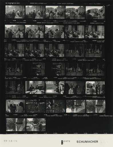 | Keywords: Ford B1471 NLGRF photo contact sheet (1976-09-12)(Gerald Ford Library).jpg White House Photographic Office WHPO is housed at the Gerald R Ford Presidential Library a branch of the National Archives and Records Administration NARA <br/><br/> This file is a 200 dpi photo contact sheet having images from roll of film B1471 of the August 9 1974 - January 20 1977 Gerald R Ford White House Photographic Office Series A0001-A9999 and B0001-B2886 photographs <br/><br/> The date on the photo contact sheet is the date the roll of film was processed not necessarily the date the photographs were taken See table below for additional details 1976-09-12 Gerald R Ford Presidential Library Image http //www fordlibrarymuseum gov/library/whphotos/B1471_NLGRF jpg B1471_NLGRF jpg from http //www fordlibrarymuseum gov/library/whphotos/19760912whpo pdf White House Photographs September 12 1976 of the http //www fordlibrarymuseum gov/Library/whphotos/whpo asp White House Photographic Collection page White House Photographic Office WHPO - Schumacher PD-USGov Institution Institution Gerald R Ford Presidential Library Table wikitable sortable + Photo contact sheet B1471 U S President Ford Administration Gerald R Ford Library Frame s Tone Subject proper Subject generic Names Geographic Location Photographer Date - 1A-8A BW Arrival for the Dedication Service of the Communion Nave at the Washington National Cathedral greeting handshaking standing talking; GRF stepping from limousine in 1st 2 frames various angles and distances; all not in every frame GRF Betty Ford Jack Ford; Revs Sayre Cave; R Feller J Kraus Washington DC Washington National Cathedral - Outside Schumacher 1976-09-12 - 9A-13A BW Dedication Service of the Communion Nave at the Washington National Cathedral seated in pews; various angles and distances; all not in every frame GRF Betty Ford Jack Ford Others Washington DC Washington National Cathedral - Interior Schumacher 1976-09-12 - 14A-21A BW Following the Dedication Service of the Communion Nave at the Washington National Cathedral - Archbishop of Canterbury greeting handshaking standing talking; various angles and distances; all not in frames; dark GRF Betty Ford Jack Ford; Archbishop Frederick Coggan; Revs Sayre Cave; R Feller J Kraus; Others Washington DC Washington National Cathedral - Outside Schumacher 1976-09-12 - 22A-23A BW Photo Opportunity with Republican Vice Presidential Candidate seated very close at desk; talking GRF Dole Oval Office Schumacher 1976-09-12 - 24A BW Wife of the Republican Vice Presidential Candidate standing talking smiling GRF Betty Ford Elizabeth Dole Patio near Oval Office Schumacher 1976-09-12 - 25A-26A BW Wife of the Republican Vice Presidential Candidate standing talking; Dole not in both frames; BF's back to camera; Cheney coatless with open shirt GRF Betty Ford Elizabeth Dole Cheney Patio near Oval Office Schumacher 1976-09-12 - 27A-28A BW Photo Opportunity with Republican Vice Presidential Candidate portraits; seated on iron chair posing Dole South Grounds Schumacher 1976-09-12 - 29A-31A BW Photo Opportunity with Republican Vice Presidential Candidate portraits; standing posing Bob Dole Elizabeth Dole Brick Path Between Oval Office and South Driveway Schumacher 1976-09-12 - 32A BW Following Photo Opportunity with Republican Vice Presidential Candidate standing talking smiling Bob Dole Elizabeth Dole; Unidentified Photographer Brick Path Between Oval Office and South Driveway Schumacher 1976-09-12 Gerald R Ford Presidential Library and Museum-cooperation PD-USGov Contact sheets by the Ford White House September 1976 |