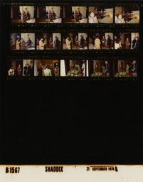 | Keywords: Ford B1567 NLGRF photo contact sheet (1976-09-21)(Gerald Ford Library).jpg White House Photographic Office WHPO is housed at the Gerald R Ford Presidential Library a branch of the National Archives and Records Administration NARA <br/><br/> This file is a 200 dpi photo contact sheet having images from roll of film B1567 of the August 9 1974 - January 20 1977 Gerald R Ford White House Photographic Office Series A0001-A9999 and B0001-B2886 photographs <br/><br/> The date on the photo contact sheet is the date the roll of film was processed not necessarily the date the photographs were taken See table below for additional details 1976-09-21 Gerald R Ford Presidential Library Image http //www fordlibrarymuseum gov/library/whphotos/B1567_NLGRF jpg B1567_NLGRF jpg from http //www fordlibrarymuseum gov/library/whphotos/19760921whpo pdf White House Photographs September 21 1976 of the http //www fordlibrarymuseum gov/Library/whphotos/whpo asp White House Photographic Collection page White House Photographic Office WHPO - Shaddix PD-USGov Institution Institution Gerald R Ford Presidential Library Table wikitable sortable + Photo contact sheet B1567 U S President Ford Administration Gerald R Ford Library Frame s Tone Subject proper Subject generic Names Geographic Location Photographer Date - 16A Color Preparations for State Dinner for the President and First Lady of the Republic of Liberia BF checking out table settings and floral arrangements for State Dinner Betty Ford Weidenfeld East Wing staff Unidentified Man Woman State Dining Room Shaddix 1976-09-21 Gerald R Ford Presidential Library and Museum-cooperation PD-USGov Contact sheets by the Ford White House September 1976 |