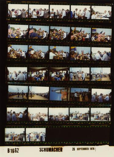 | Keywords: Ford B1662 NLGRF photo contact sheet (1976-09-26)(Gerald Ford Library).jpg White House Photographic Office WHPO is housed at the Gerald R Ford Presidential Library a branch of the National Archives and Records Administration NARA <br/><br/> This file is a 200 dpi photo contact sheet having images from roll of film B1662 of the August 9 1974 - January 20 1977 Gerald R Ford White House Photographic Office Series A0001-A9999 and B0001-B2886 photographs <br/><br/> The date on the photo contact sheet is the date the roll of film was processed not necessarily the date the photographs were taken See table below for additional details 1976-09-26 Gerald R Ford Presidential Library Image http //www fordlibrarymuseum gov/library/whphotos/B1662_NLGRF jpg B1662_NLGRF jpg from http //www fordlibrarymuseum gov/library/whphotos/19760926whpo pdf White House Photographs September 26 1976 of the http //www fordlibrarymuseum gov/Library/whphotos/whpo asp White House Photographic Collection page White House Photographic Office WHPO - Schumacher PD-USGov Institution Institution Gerald R Ford Presidential Library Table wikitable sortable + Photo contact sheet B1662 U S President Ford Administration Gerald R Ford Library Frame s Tone Subject proper Subject generic Names Geographic Location Photographer Date - 2-17 Color Campaign Trip to Mississippi - Rally in Bay St Louis MS greeting handshaking; GRF coatless; various angles and distances; all not in every frame GRF Crowd Boy Scouts Cub Scouts Others Bay St Louis MS Near Hancock County Public Library Schumacher 1976-09-26 - 18-19 Color Campaign Trip to Mississippi - Seafood Buffet Luncheon GRF seated at table eating talking coatless GRF Others Biloxi MS Fisherman's Wharf Restaurant Schumacher 1976-09-26 - 20-23 Color Campaign Trip to Mississippi - Rally in Biloxi MS greeting handshaking in 1st frame; speaking at lectern in others; GRF coatless; various angles and distances; all not in every frame GRF Crowd Others Biloxi MS Biloxi Industrial Park Schumacher 1976-09-26 - 24-25 Color Campaign Trip to Mississippi - Tour of Mavar's Shrimp and Oyster Company standing talking greeting handshaking; GRF coatless; various angles and distances; Mavars not in both frames GRF Victor Nick Mavar Others Biloxi MS Biloxi Industrial Park - Mavar's Shrimp and Oyster Company Wharf Schumacher 1976-09-26 - 26-28 Color Campaign Trip to Mississippi - Rally in Biloxi MS greeting handshaking laughing; GRF coatless; various angles and distances; all not in every frame GRF Crowd Biloxi MS Biloxi Industrial Park Schumacher 1976-09-26 - 29-31 Color Campaign Trip to Mississippi - Following Tour of Mavar's Shrimp and Oyster Company standing posing; GRF coatless; shrimp boats in background GRF Victor Nick Mavar Others Family Biloxi MS Biloxi Industrial Park - Mavar's Shrimp and Oyster Company Wharf Schumacher 1976-09-26 - 32 Color Campaign Trip to Mississippi - Following Tour of Mavar's Shrimp and Oyster Company standing talking surrounding GRF; GRF coatless GRF Victor Nick Mavar Others Family Biloxi MS Biloxi Industrial Park - Mavar's Shrimp and Oyster Company Wharf Schumacher 1976-09-26 Gerald R Ford Presidential Library and Museum-cooperation PD-USGov Contact sheets by the Ford White House September 1976 |