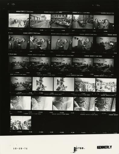 Keywords: Ford B1759 NLGRF photo contact sheet (1976-10-09)(Gerald Ford Library).jpg White House Photographic Office WHPO is housed at the Gerald R Ford Presidential Library a branch of the National Archives and Records Administration NARA <br/><br/> This file is a 200 dpi photo contact sheet having images from roll of film B1759 of the August 9 1974 - January 20 1977 Gerald R Ford White House Photographic Office Series A0001-A9999 and B0001-B2886 photographs <br/><br/> The date on the photo contact sheet is the date the roll of film was processed not necessarily the date the photographs were taken See table below for additional details 1976-10-09 Gerald R Ford Presidential Library Image http //www fordlibrarymuseum gov/library/whphotos/B1759_NLGRF jpg B1759_NLGRF jpg from http //www fordlibrarymuseum gov/library/whphotos/19761009whpo pdf White House Photographs October 9 1976 of the http //www fordlibrarymuseum gov/Library/whphotos/whpo asp White House Photographic Collection page White House Photographic Office WHPO <br/> Creator David Hume Kennerly PD-USGov Institution Institution Gerald R Ford Presidential Library Table wikitable sortable + Photo contact sheet B1759 U S President Ford Administration Gerald R Ford Library Frame s Tone Subject proper Subject generic Names Geographic Location Photographer Date - 2A BW Campaign Trip to Texas - Arrival in Dallas TX GRF walking past crowd behind rope; smiling talking GRF Crowd; Secret Service Dallas TX Love Field Kennerly 1976-10-09 - 3A-5A BW Campaign Trip to Texas - Parade to Open the Texas State Fair - Governor of Texas GRF and Briscoe standing in limousine sun roof waving to crowd; agents flanking vehicle; various angles and distances GRF Gov Dolph Brisco; Crowd; Secret Service Dallas TX Downtown Street Kennerly 1976-10-09 - 6A-10A BW Campaign Trip to Texas - Meeting with Representatives of the Texas Livestock Association greeting handshaking; various angles and distances; all not in every frame GRF Connally W Gallagher D Clark J Fair R Blackwell R Kieckhefer W Phluger V Smith Dallas TX Texas State Fairgrounds - Pan American Lounge Kennerly 1976-10-09 - 11A-17A BW Campaign Trip to Texas - Meeting with Representatives of the Texas Livestock Association seated around table; various angles and distances; all not in every frame GRF Connally W Gallagher D Clark J Fair R Blackwell R Kieckhefer W Phluger V Smith Dallas TX Texas State Fairgrounds - Pan American Lounge Kennerly 1976-10-09 - 18A-19A BW Campaign Trip to Texas - Opening of the Texas State Fair Connally seated in foreground; GRF in background speaking at lectern GRF Connally Others Dallas TX Texas State Fairgrounds Kennerly 1976-10-09 - 20A-21A BW Campaign Trip to Texas - Prior to Coin Toss for Texas-Oklahoma Football Game - Opening of the Texas State Fair on field prior to coin toss; all not in frames GRF University of Texas Football Captains; University of Oklahoma Football Captains; Referees Others Dallas TX Cotton Bowl - Texas State Fairgrounds Kennerly 1976-10-09 - 22A-27A BW Campaign Trip to Texas - Prior to Texas-Oklahoma Football Game -Opening of the Texas State Fair walking across field; GRF looking up waving; various angles and distances; all not in every frame GRF Secret Service Others Dallas TX Cotton Bowl - Texas State Fairgrounds Kennerly 1976-10-09 Gerald R Ford Presidential Library and Museum-cooperation PD-USGov Contact sheets by the Ford White House October 1976 Photographs by David Hume Kennerly from 1976 |