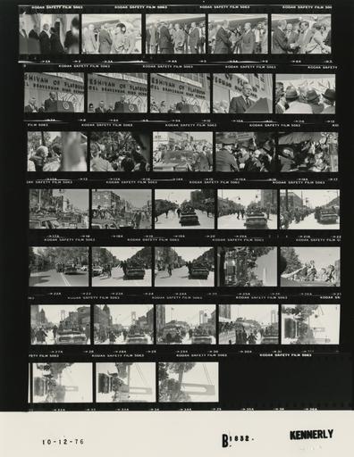 | Keywords: Ford B1832 NLGRF photo contact sheet (1976-10-12)(Gerald Ford Library).jpg White House Photographic Office WHPO is housed at the Gerald R Ford Presidential Library a branch of the National Archives and Records Administration NARA <br/><br/> This file is a 200 dpi photo contact sheet having images from roll of film B1832 of the August 9 1974 - January 20 1977 Gerald R Ford White House Photographic Office Series A0001-A9999 and B0001-B2886 photographs <br/><br/> The date on the photo contact sheet is the date the roll of film was processed not necessarily the date the photographs were taken See table below for additional details 1976-10-12 Gerald R Ford Presidential Library Image http //www fordlibrarymuseum gov/library/whphotos/B1832_NLGRF jpg B1832_NLGRF jpg from http //www fordlibrarymuseum gov/library/whphotos/19761012whpo pdf White House Photographs October 12 1976 of the http //www fordlibrarymuseum gov/Library/whphotos/whpo asp White House Photographic Collection page White House Photographic Office WHPO <br/> Creator David Hume Kennerly PD-USGov Institution Institution Gerald R Ford Presidential Library Table wikitable sortable + Photo contact sheet B1832 U S President Ford Administration Gerald R Ford Library Frame s Tone Subject proper Subject generic Names Geographic Location Photographer Date - 2A BW Meeting with American Leaders of East European Ancestry handshaking GRF Unidentified Man Cabinet Room Kennerly 1976-10-12 - 3A-6A BW Campaign Trip to New York - Arrival in New York City greeting handshaking; all not in every frame; Air Force in in background in some frames GRF Sens Javits Buckley L Lefkowitz P Weinburg J Calandra J Margiotta J Muratori Others New York NY John F Kennedy International Airport Kennerly 1976-10-12 - 7A-10A BW Campaign Trip to New York - Remarks Following Tour of the Center for Holocaust Studies GRF at lectern speaking close-ups; others and high school sign in background; all not in every frame GRF Sens Javits Buckley Richard Rosenbaum G Klein Y Eliach F Goldschmidt Others Brooklyn NY Yeshiva of Flatbush High School - Outside Kennerly 1976-10-12 - 11A-13A BW Campaign Trip to New York - Following Tour of the Center for Holocaust Studies greeting handshaking smiling milling; all not in every frame GRF Crowd Brooklyn NY Yeshiva of Flatbush High School - Outside Kennerly 1976-10-12 - 14A BW Campaign Trip to New York - Motorcade through Brooklyn Borough Park Bay Ridge GRF and Buckley seated on trunk of open limousine waving; GRF using microphone; agents walking alongside; crowd in background GRF Sen Buckley Secret Service Crowd Brooklyn NY Street Kennerly 1976-10-12 - 15A-16A BW Campaign Trip to New York - Motorcade through Brooklyn Borough Park Bay Ridge police keeping crowd back Police Crowd Sephardic Brooklyn NY Street Kennerly 1976-10-12 - 17A-34A BW Campaign Trip to New York - Motorcade through Brooklyn Borough Park Bay Ridge GRF and Buckley seated on trunk of open limousine waving; GRF using microphone; agents walking alongside; crowd in background; Triboro Bridge in last 7 frames GRF Sen Buckley Secret Service Crowd Brooklyn NY Street Kennerly 1976-10-12 Gerald R Ford Presidential Library and Museum-cooperation PD-USGov Contact sheets by the Ford White House October 1976 Photographs by David Hume Kennerly from 1976 |