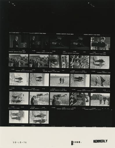 | Keywords: Ford B1885 NLGRF photo contact sheet (1976-10-14)(Gerald Ford Library).jpg White House Photographic Office WHPO is housed at the Gerald R Ford Presidential Library a branch of the National Archives and Records Administration NARA <br/><br/> This file is a 200 dpi photo contact sheet having images from roll of film B1885 of the August 9 1974 - January 20 1977 Gerald R Ford White House Photographic Office Series A0001-A9999 and B0001-B2886 photographs <br/><br/> The date on the photo contact sheet is the date the roll of film was processed not necessarily the date the photographs were taken See table below for additional details 1976-10-14 Gerald R Ford Presidential Library Image http //www fordlibrarymuseum gov/library/whphotos/B1885_NLGRF jpg B1885_NLGRF jpg from http //www fordlibrarymuseum gov/library/whphotos/19761014whpo pdf White House Photographs October 14 1976 of the http //www fordlibrarymuseum gov/Library/whphotos/whpo asp White House Photographic Collection page White House Photographic Office WHPO <br/> Creator David Hume Kennerly PD-USGov Institution Institution Gerald R Ford Presidential Library Table wikitable sortable + Photo contact sheet B1885 U S President Ford Administration Gerald R Ford Library Frame s Tone Subject proper Subject generic Names Geographic Location Photographer Date - 1A-4A BW 38th Press Conference GRF at lectern speaking; various angles; close ups GRF Washington DC Old Executive Office Building OEOB -Room 450 Kennerly 1976-10-14 - 5A-8A BW Campaign Trip to Iowa; Speaking at Iowa State University - Ames Iowa GRF at lectern speaking; others seated; various angles and distances; all not in every frame GRF Media Crowd Ames IA Iowa State University - Iowa State Center -Outside Kennerly 1976-10-15 - 9A BW Campaign Trip to Iowa; Following Speech at Iowa State University - Ames Iowa greeting handshaking; GRF in middle of crowd GRF Crowd Secret Service Ames IA Iowa State University - Iowa State Center -Outside Kennerly 1976-10-15 - 10A-13A BW Campaign Trip to Iowa; Tour of Harvesting Operations at King Farm - Boone County Iowa walking talking in field; backs to camera; moving away from camera; 1 frame blank GRF Marshall King Boone County IA Marshall P King Farm Kennerly 1976-10-15 - 14A-19A BW Campaign Trip to Iowa; Tour of Harvesting Operations at King Farm - Boone County Iowa standing talking examining corn in last 5 frames; harvester in last 3 frames GRF Marshall King Boone County IA Marshall P King Farm Kennerly 1976-10-15 - 20A-22A BW Campaign Trip to Iowa; Tour of Harvesting Operations at King Farm - Boone County Iowa walking back toward camera; harvester in background in 1st 2 frames GRF Marshall King Boone County IA Marshall P King Farm Kennerly 1976-10-15 Gerald R Ford Presidential Library and Museum-cooperation PD-USGov Contact sheets by the Ford White House October 1976 Photographs by David Hume Kennerly from 1976 |
